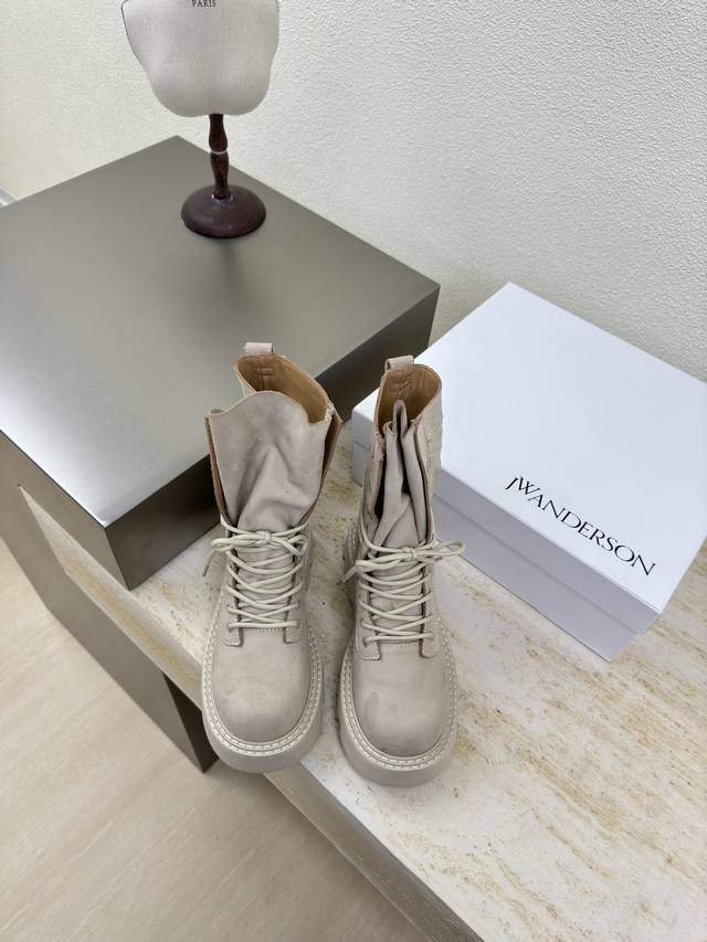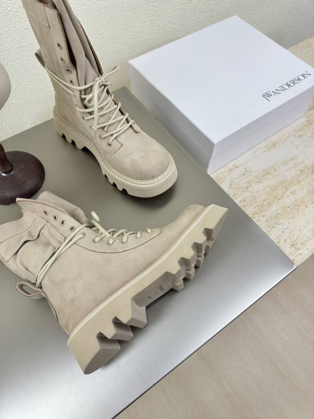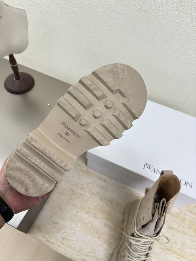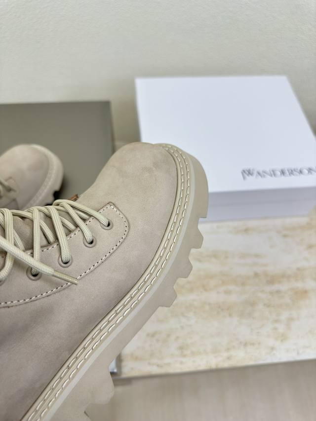 / 登山靴 J W 设计师品牌 女鞋 头层磨砂 牛皮 真皮包跟 档次满满 沙色登山系列 防滑大底设计 有着若隐若现的魅力。 元素的加入为精致的鞋体注入更多反叛和力量
