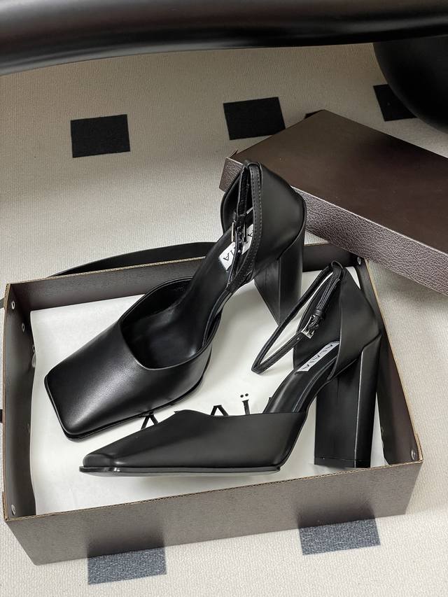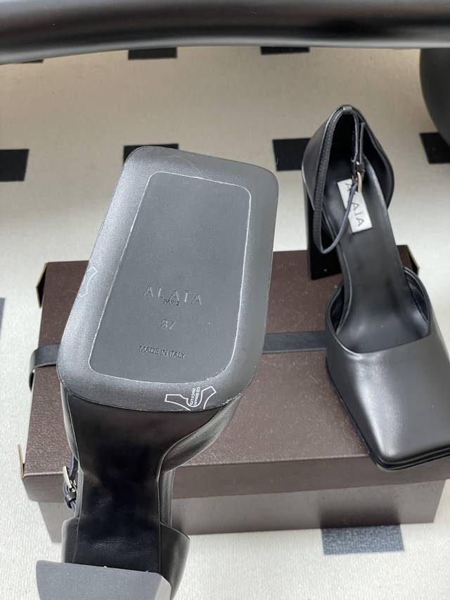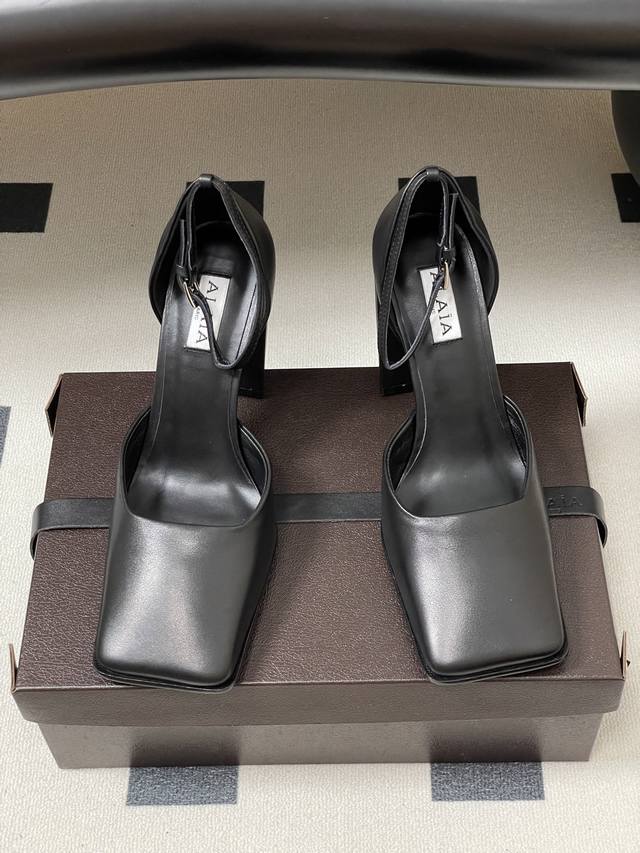 皮带盒20下单备注 默认普通盒 2025早秋新款 Alaia阿莱亚 极简风时髦精粗跟方头单鞋高跟中空凉鞋 时尚达人都在寻觅一双能兼顾舒适与风格的短靴 而这双无疑是这个季节的最佳答案! 经典方头设计打破传统楦型的局促 给予脚趾自由舒展的空间,为整体造型增添了一抹硬朗与精致 无论搭配裙装还是裤装 都能轻松提升时尚度 。粗跟的设计堪称神来之笔 高度恰到好处 既为身姿增添挺拔感 又确保行走时的稳健与舒适,即使长时间穿着也不易疲惫 无论是穿梭在熙熙攘攘的都市街道 还是奔赴重要的商务场合 它都能成为你最得力的时尚伙伴