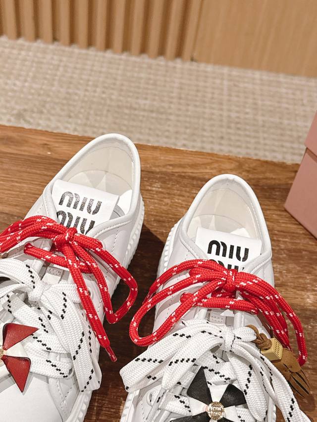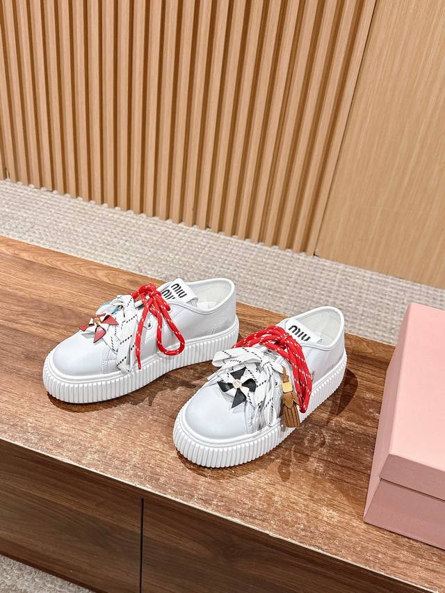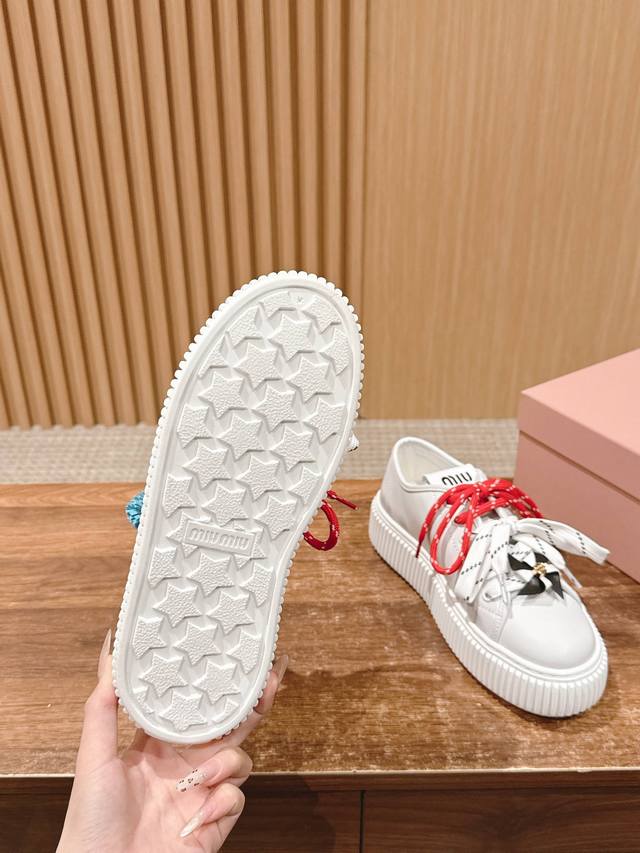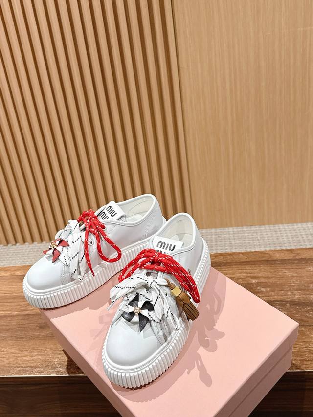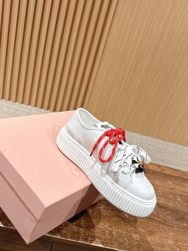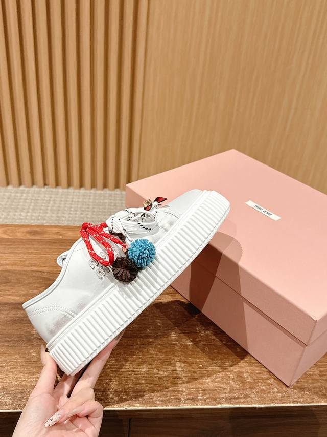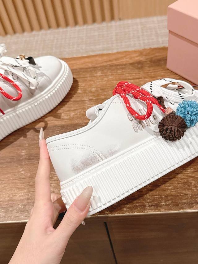 皮里 Miu Miu#缪缪秋冬新款 厚底 休闲小白鞋 羊毛饼干鞋
