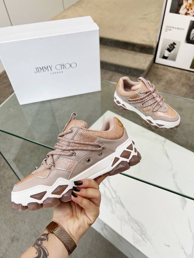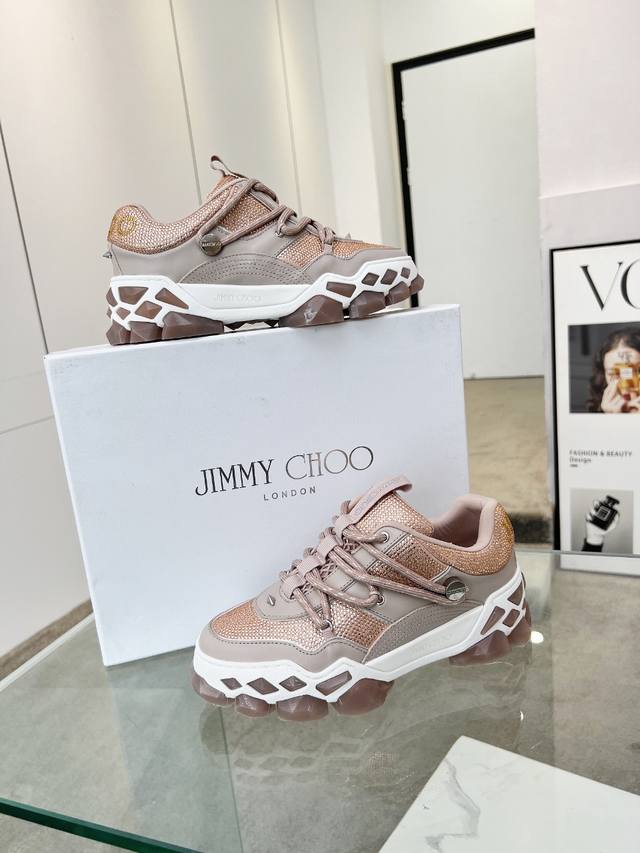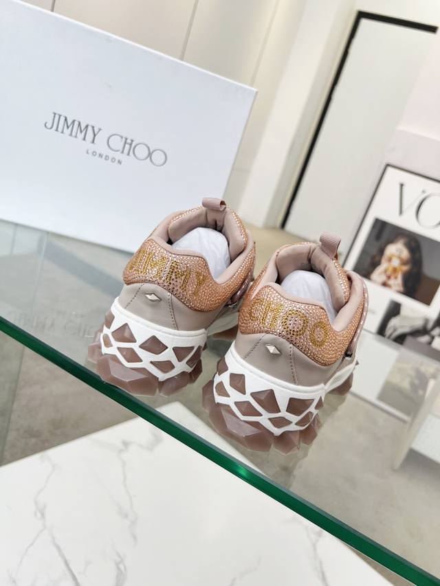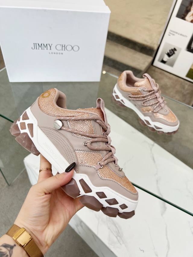 皮面 ,钻面 DDD Jimmy Choo 吉米周 2025春夏新款Diamond X Ii M 系列老爹鞋火爆上新,柔软皮革材质精心制作,立体廓形比例夸张,成就别具一格的个性运动潮履别致鞋底采用品牌标志性 Diamond 仿钻石多切面塑形,营造舒适包裹感与显高视觉感精巧微调的莱卡内衬搭配孔眼设计便于排出鞋内空气和水分,令脚部更加透气舒爽巧妙采用多种材质,贴心加厚鞋垫,令您的周末或休闲时光脚感更加轻盈灵巧,舒适时尚! DDD 鞋面:头层牛皮磨砂 DDD 大底:Tpu橡胶发泡组合 减震、防滑、耐磨 DDD