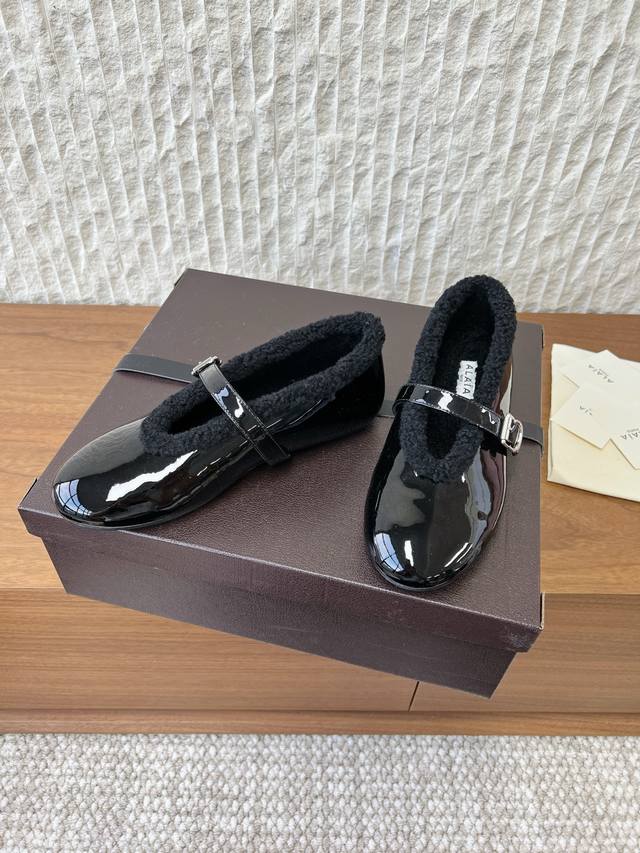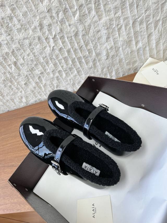 皮面 G101 Alaia 阿莱亚 25Ss秋冬新款 圆头 平底 羊猄 玛丽珍 芭蕾舞鞋 DDD Alaia 阿莱亚这款芭蕾舞鞋,光泽感满满,搭配金属标扣,复古又优雅计。 DDD 毛绒内里超柔软,秋冬穿很舒服,通勤休闲都Ok!圆头+低跟设计,走路稳稳的,适合长时间穿。 DDD 无论搭裙装还是裤装,都能展现法式精致感,职场约会都能Hold住。 DDD 面料:采用原版进口羊猄 DDD 内里面:羊毛 DDD 大底:原版定制橡胶大底 DDD Size:35-39 40.41.42定做不退换 DDD