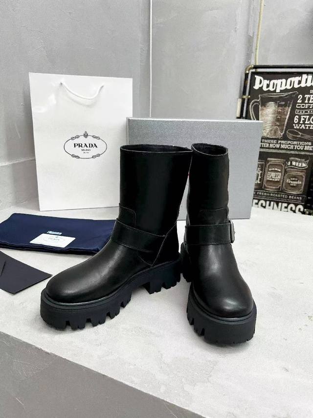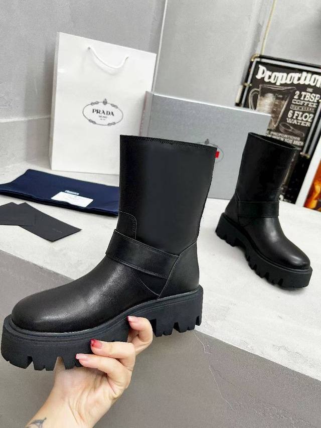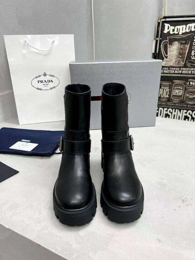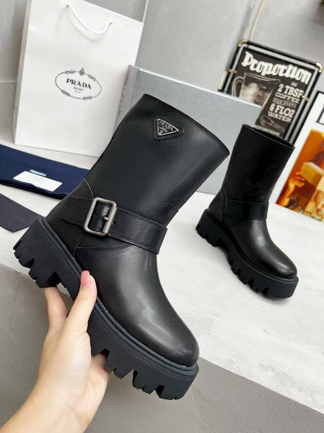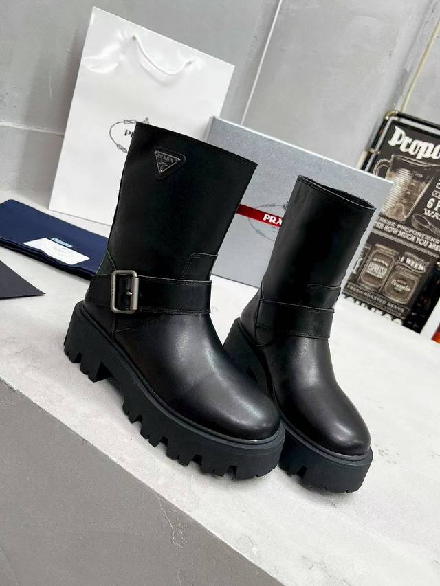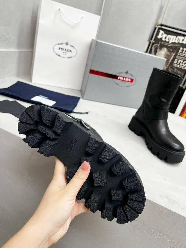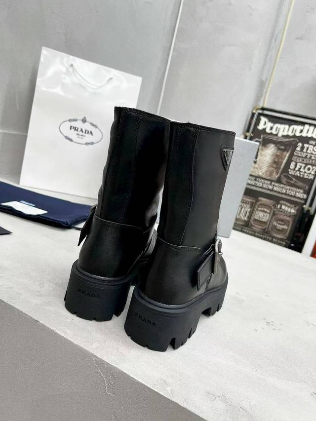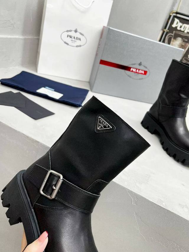 / 皮面 p家经典三角标王炸女靴,冬天买不到的系列,绝对是今年的大爆款!!贼好看,p家靴子真的很哇塞!上脚大气显腿瘦气质这块刚好拿捏 鞋面:牛皮 高丝光牛猄 内里:
