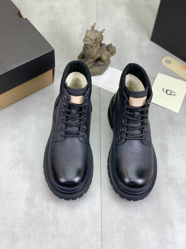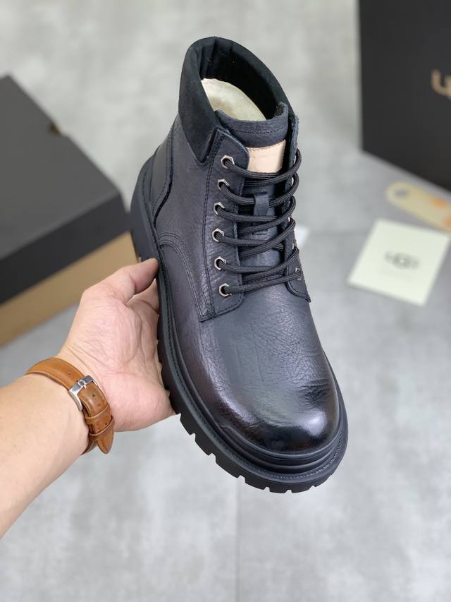 真羊毛 Ugg 爆款男鞋官方网同步正品品质 不是一般市场仿货可比拟的鞋面为进口意大利磨砂牛皮,内里:垫脚级真羊毛只有A级才能显效果 手感柔滑细腻鞋型大气,只有正