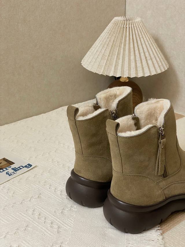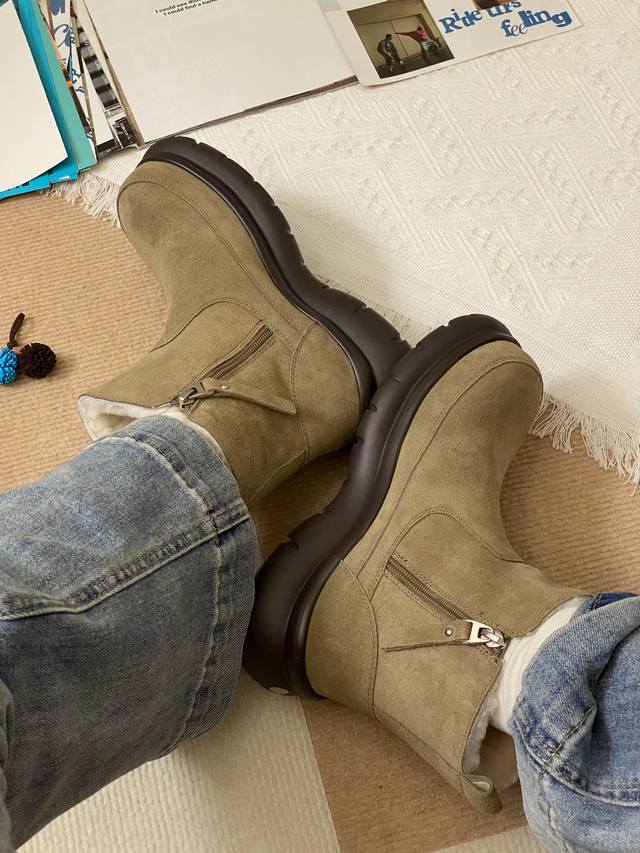 短靴筒设计超显腿长 搭配大衣 羽绒服 牛仔裤都绝绝子 这个冬天 温暖又时髦 尺码:35-40 厂价p: