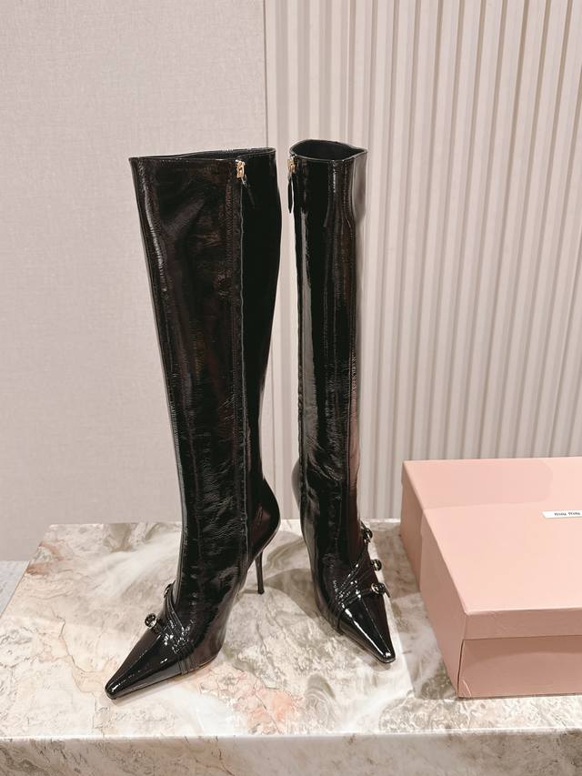 高定版 225 Miu Miu早秋新款美少女战靴, 全球限量款闭眼可入,朋克风满满,上脚绝绝子长短两个尺寸可选。既能当甜妹又能扮拽酷越看越上头。原版1:1订制进口双色小牛皮面料,羊皮内里,原版一致耐磨大底!