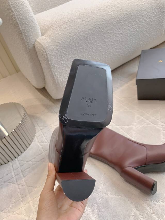 / 短靴 长靴 Alaia新款方头高跟靴 好穿又时髦的一双 松弛感拉满 上脚超级舒适 独特有个性 时髦感十足 鞋面小牛皮 内里垫脚羊皮 意大利真皮大底 跟高9Cm