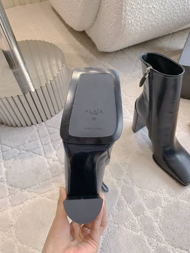 / 短靴 长靴 Alaia新款方头高跟靴 好穿又时髦的一双 松弛感拉满 上脚超级舒适 独特有个性 时髦感十足 鞋面小牛皮 内里垫脚羊皮 意大利真皮大底 跟高9Cm