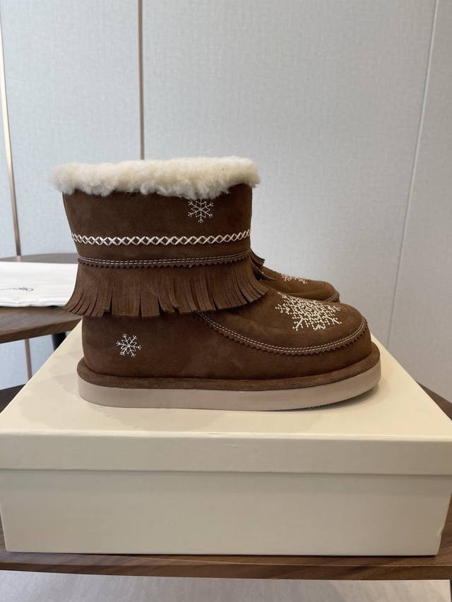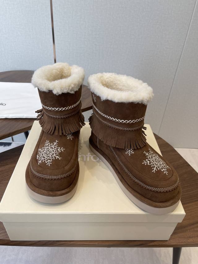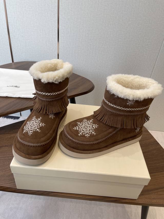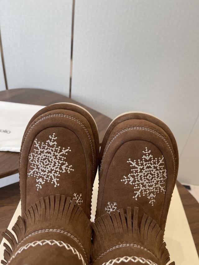 短靴 高靴 DDD 雪地靴 主推款 易搭配 Unfolio精品 高丝光牛反绒皮面 DDD 流苏设计 几万针刺绣雪花 图案 内里羊毛 小众设计师25发布会新款 DDD 面料选用 高丝光牛反绒皮 内里舒适羊毛里 DDD 原版可回收材质收腰流线型橡胶大底 DDD Size:35-41 40 41订做不退换 DDD