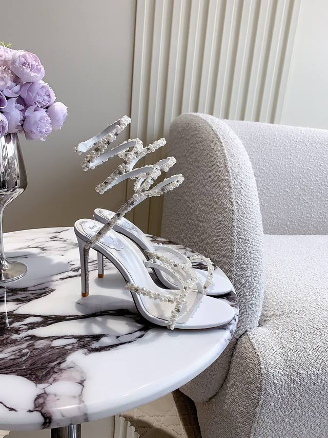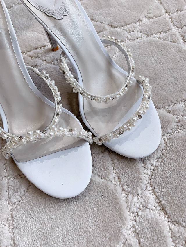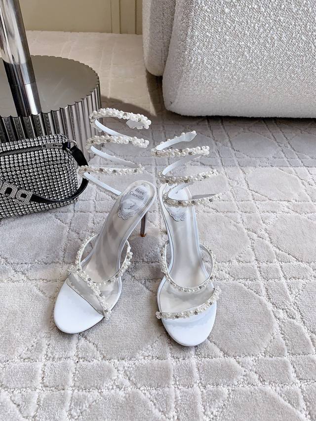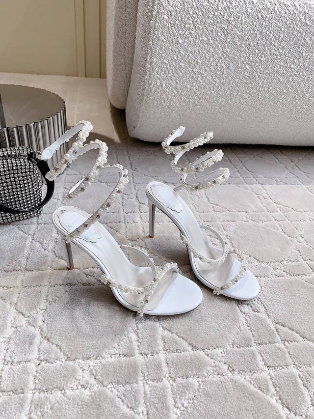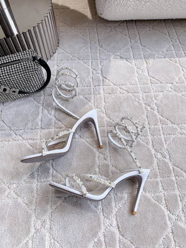 矮跟 高跟 Ren* Caovill*蛇形珍珠高跟凉鞋 上脚仙气十足 堪称工艺品! 鞋面纯手工缝制珍珠 垫脚羊皮 意大利真皮大底 跟高4.5Cm 9.5Cm 码