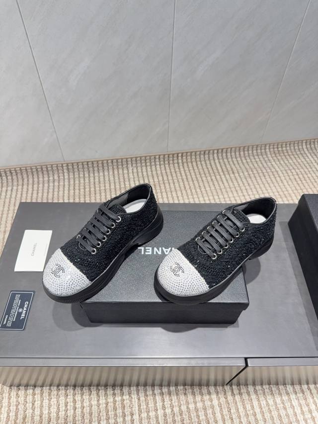 FFF 码数:35-39 40.41.定制不退换 DDD 小香奶奶早秋火爆休闲系列 圆头厚底烫钻休闲鞋 DDD 仙女款,最新的拼色绝了,无法抗拒,最新饼干鞋目前超级流行的彩色休闲鞋,网红明星小红书狂追热推 发售蠢萌可爱的造型带了点复古味! 造型特殊,很有辨识度, 显瘦显腿长,绝对实力派,穿上也很舒服,高颜值 舒适,增高 一定要推荐给大家,今年系列的主打, 极简的风格 DDD 面料:原版定制布料烫钻工艺 DDD 内里:原版定制羊皮 DDD 垫脚:原版定制注塑成型垫 DDD 大底:原版开模Tpu成型底 DDD