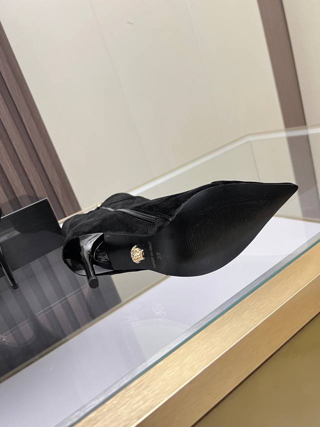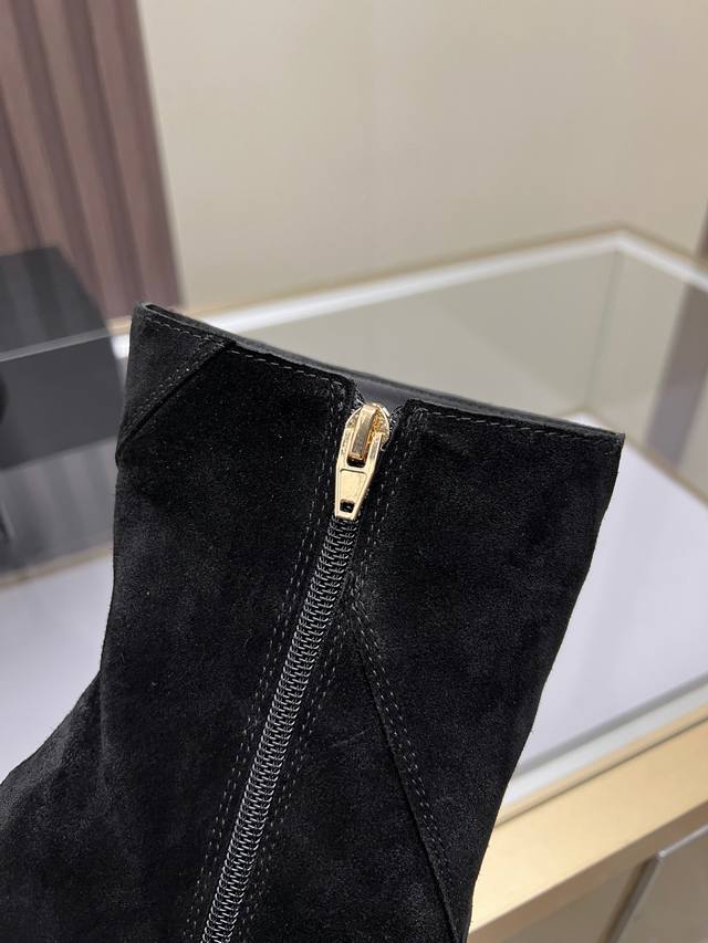 码数:35-41,可定做42码 面料:牛绒+高丝光+羊皮内里+羊皮垫脚+橡胶底 颜色:黑色,杏色 靴筒高度:28厘米 跟高:10.5厘米