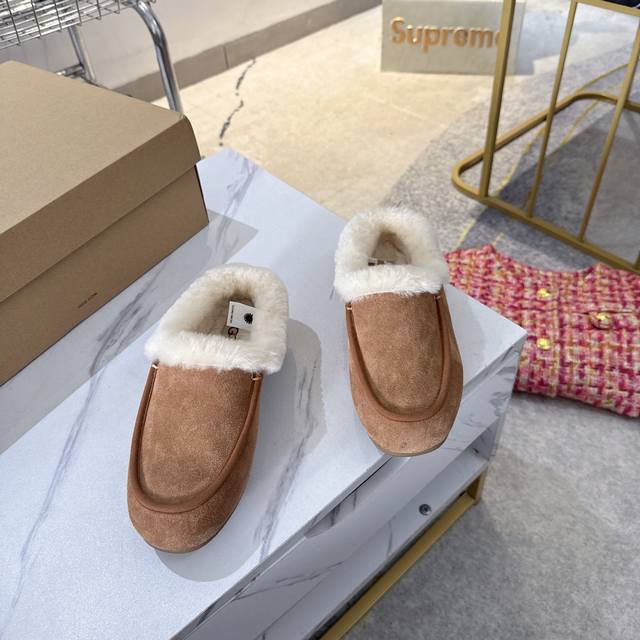 秋冬新品一脚蹬羊毛便鞋.塔茨勒 鞋面:牛剖层革 区别市场普货羊皮 鞋口:A级羊皮毛 内里:纯羊毛 鞋底:轻翼外底 Eva-官网同步四层底 区别市场普货底 底厚: