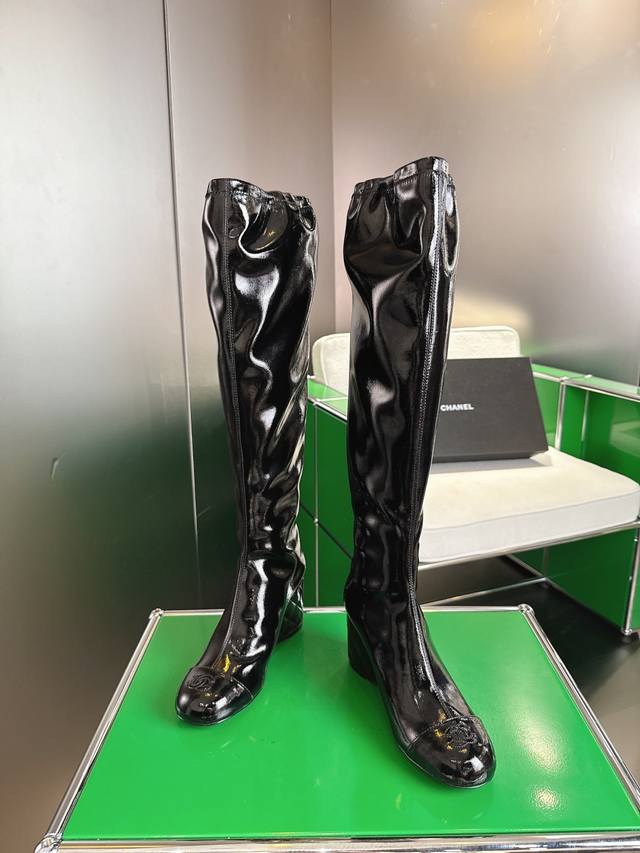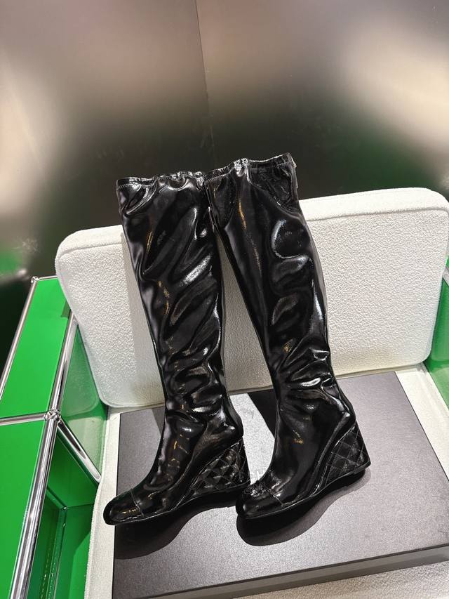 秋冬新品双C菱格 DDD 顶级品质 坡跟弹力松紧靴口高靴 DDD 弹力材质巧妙拼接 贴合腿部曲线 DDD 既保证活动自如 又增添几分随性灵动。 DDD 7Cm坡跟设计精妙 18寸高度恰到好处 DDD 面料采用原版漆皮材质 DDD 内里垫脚均为丝绸羊皮 DDD 意大利原版进口真皮大底 DDD 尺码34-42 [34.40.41.42定制] DDD