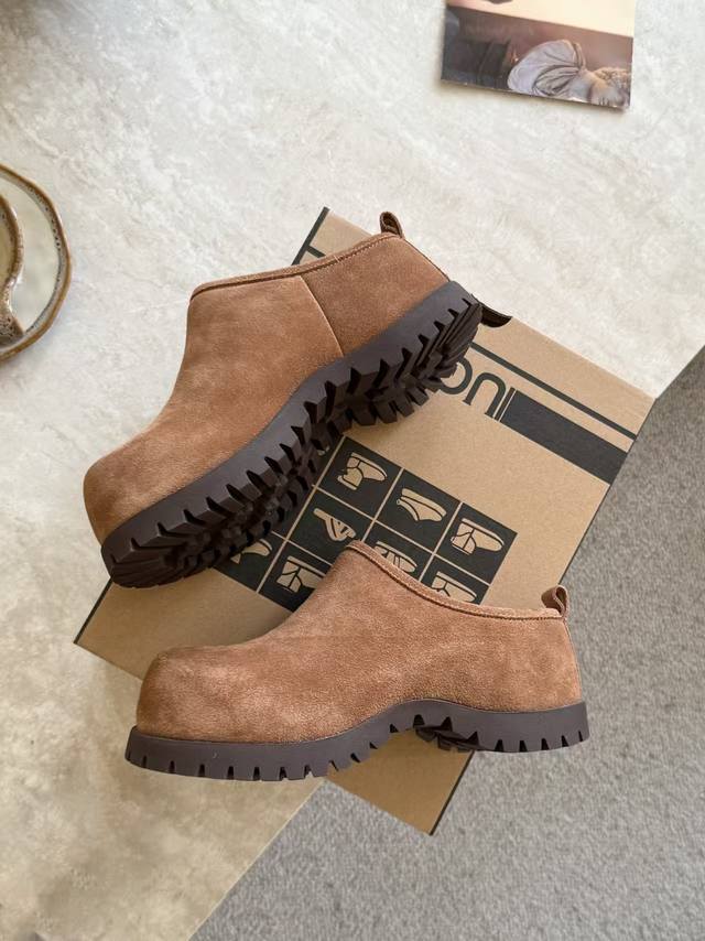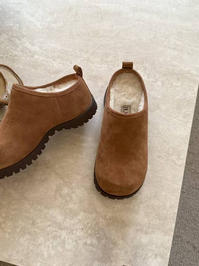 秋冬新款土豆羊毛拖鞋, 巨显可爱和时髦,拉长腿一绝,5公分的内增高,舒适的橡胶大底,出奇的暖和真的是让我无法自拔真太可爱了~ 毛茸茸的羊毛是选用欧洲进口A级羊毛 鞋面:牛反绒 内里:羊毛 码数:35-40