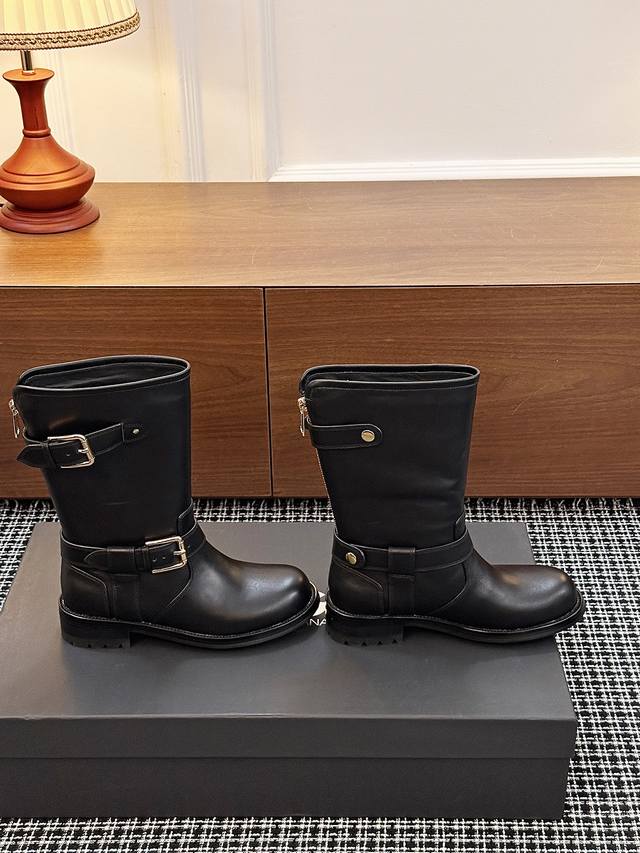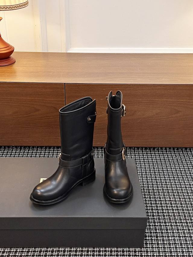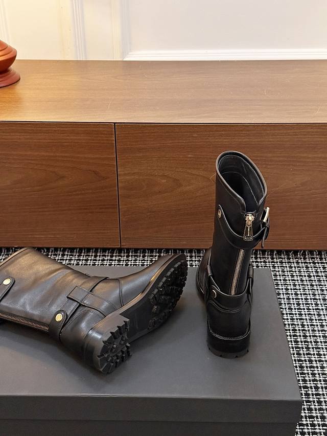 秋冬新款靴子骑士靴10寸 DDD 各大奢侈品牌今年都开始玩起了复古风也是潮流风向标主要体现现代女性的都市摩登风利落 飒爽 干练新风貌整双靴看上去非常有质感且高级喜欢靴子的小姐姐非常值得入手 DDD 鞋面材质:头层牛皮 DDD 鞋里材质:牛皮 DDD 鞋底材质:原版开模真皮底 3.5Cm DDD 鞋码选购:女35-42 女40.41.42不退换 DDD