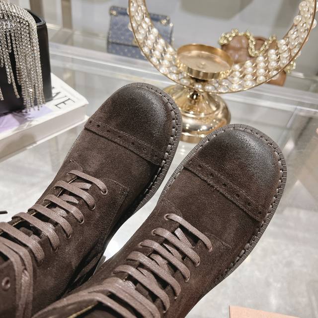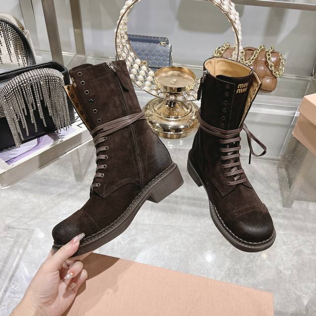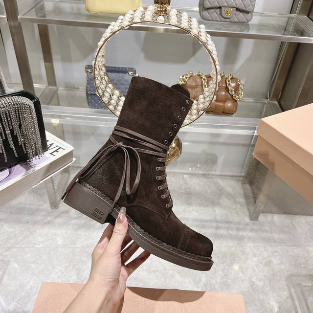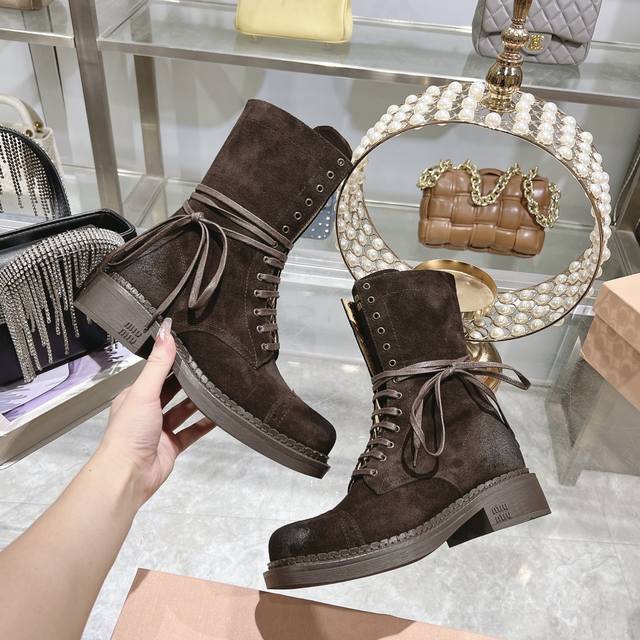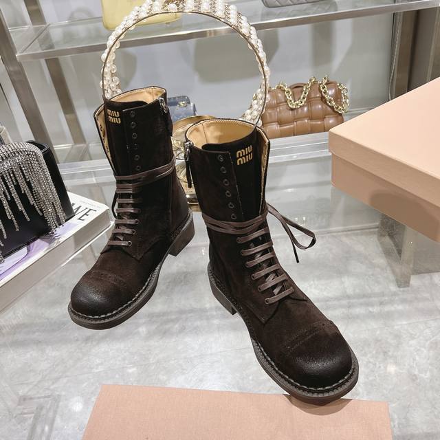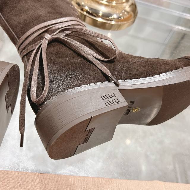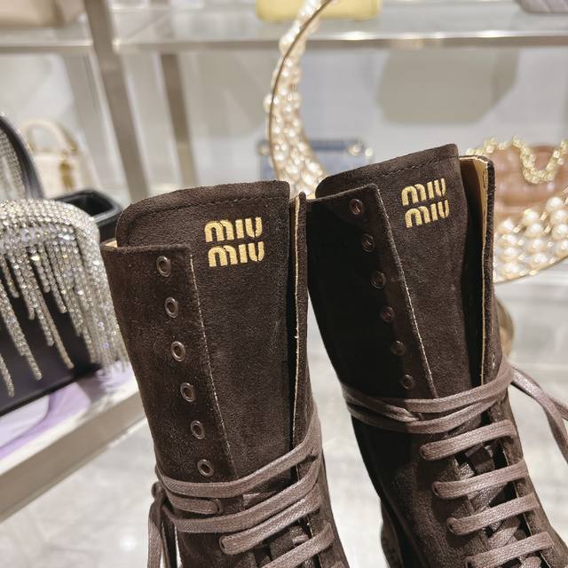 / 秋冬新款马丁靴 骑士靴设计感十足,Miumiu的独特风格展现无遗,让你瞬间成为人群中的焦点,成为时尚界的女王时髦精品必备。鞋底侧面全 Miu Miu Logo长