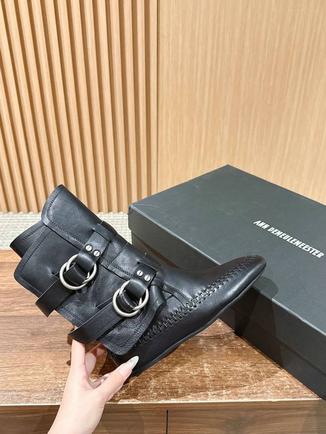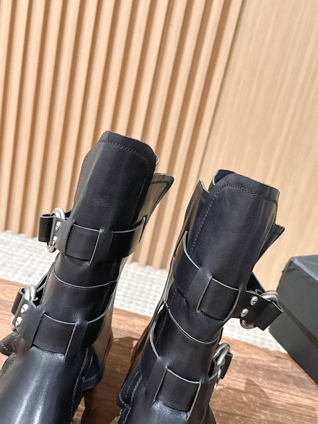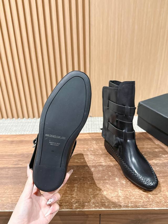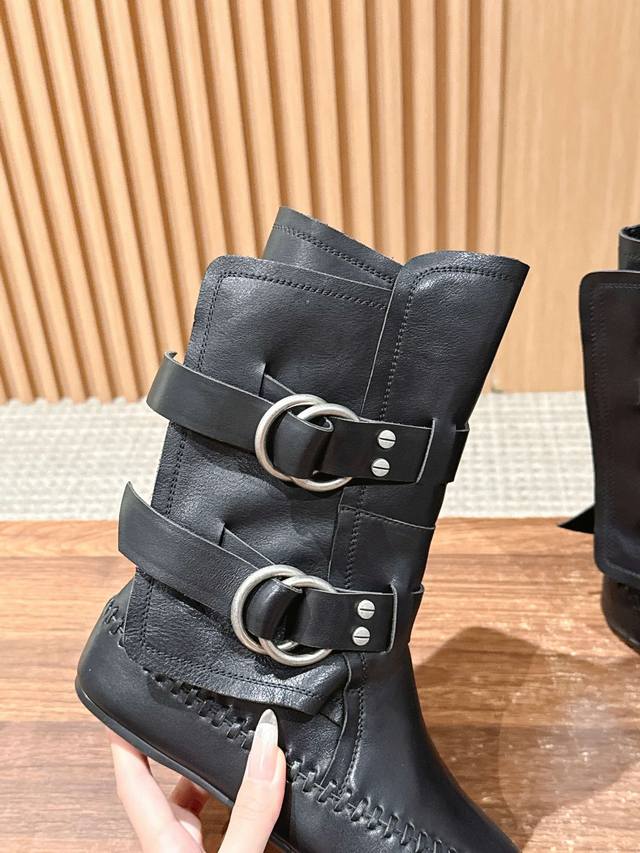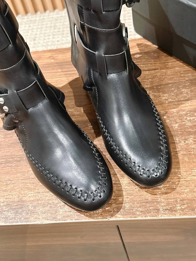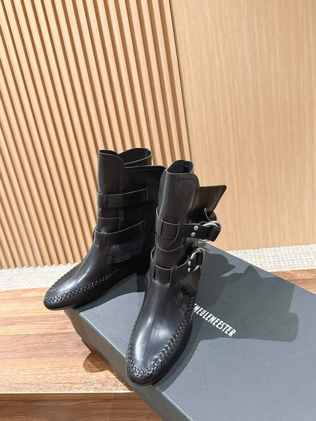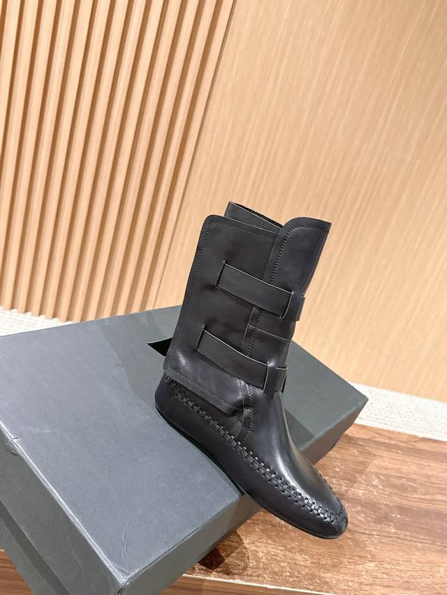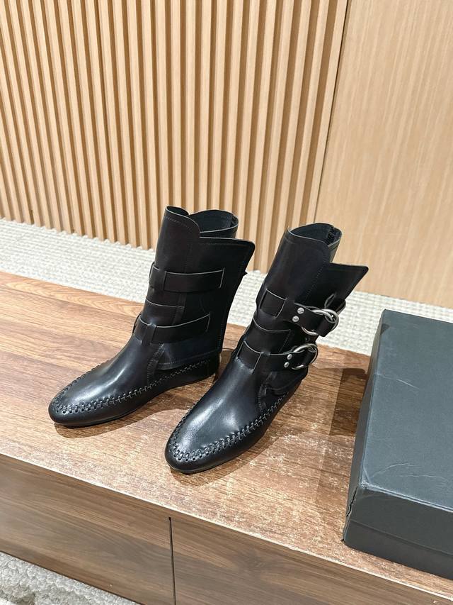 秋冬新款 超软皮质马克缝线皮带扣短靴
