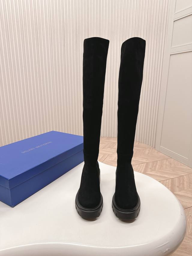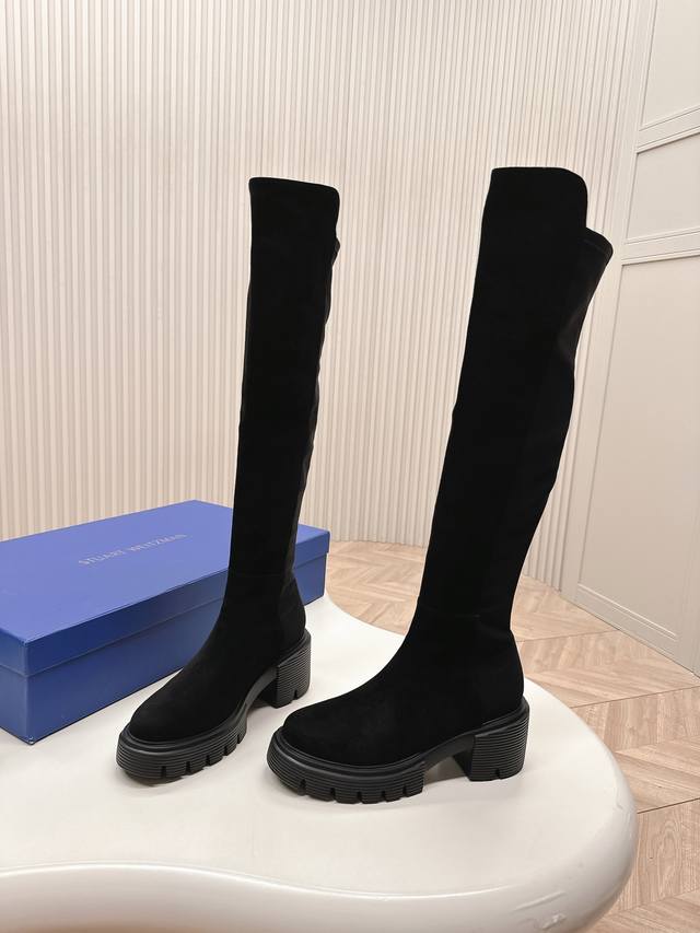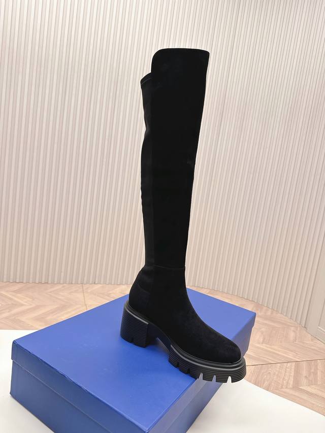 秋冬靴系列最新过膝靴 最新的厚底5050款 Ultralift 系列!跟高4.5Cm,上脚非常修饰腿型!敲好看!相信我!一定要买的靴子! 鞋面采用进口意大利小羊皮& 高丝光羊猄皮!光泽度十足!后跟是进口弹力布,回弹性非常好!不易变形!垫脚也是原皮烫金!字体清晰流畅!内里采用进口羊皮! 尺码:35-40 [40订做]