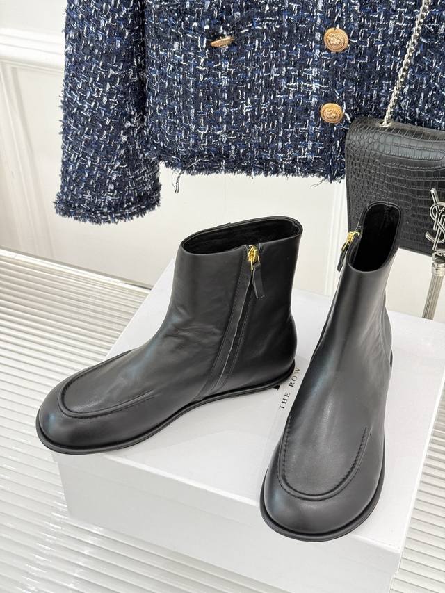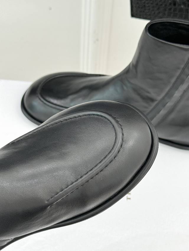 系列平底圆头短靴 Canel系列平底鞋,相信人手一双了,新款靴子秉承着一贯的极简主义风格,极轻极舒适,小牛皮超级柔软穿上如袜子一样包裹着肌肤,感受不到任何束缚,憋憋的圆头,立体包边设计,既有层次感又显瘦 鞋面:小牛皮 高丝光牛反绒 内里:羊皮里垫 鞋底:进口Tpu橡胶大底 码数:35-41 [40.41定做]