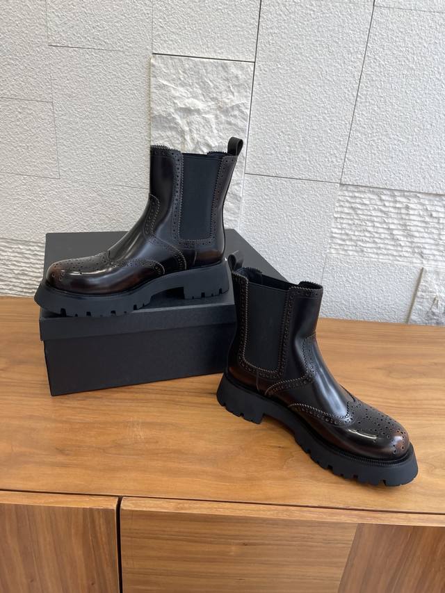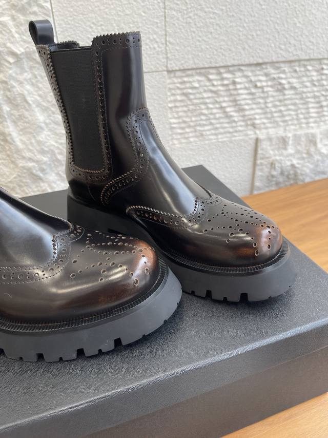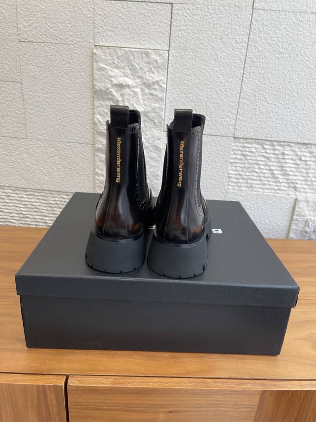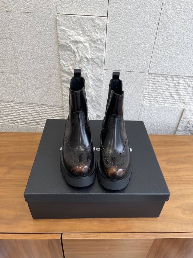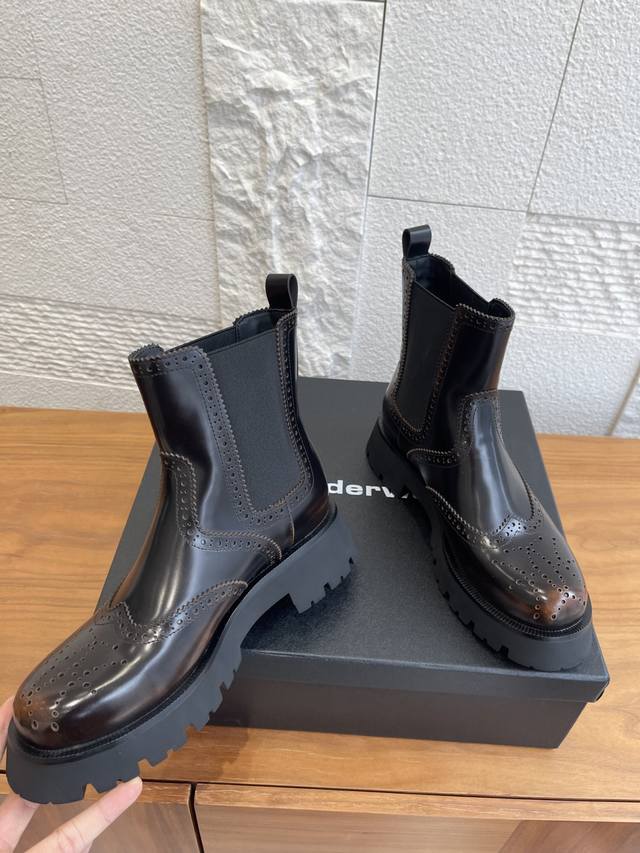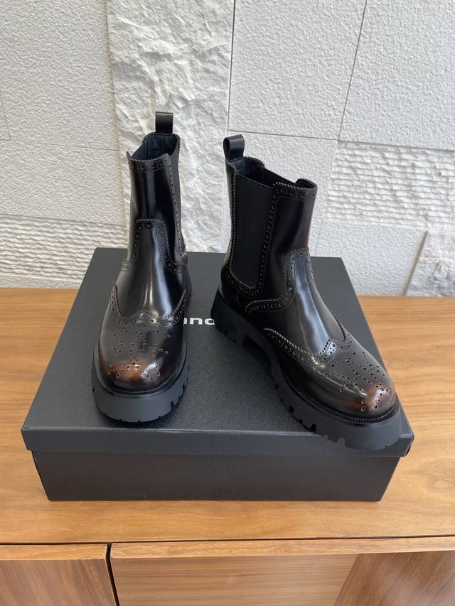 级版本: DDD Alexander Wang 亚力山大王 25Ss 秋冬新款 复古 布洛克雕花 厚底 切尔西 短靴 DDD 这双靴一上脚,中性酷飒感和精致腔调居然能同时拿捏。亮面皮革自带“反光板”特效,在光线里流转高级光泽感,侧边弹性带一拉就贴合脚踝,胖瘦脚都能穿出利落随性感~ DDD 从机车风皮衣到甜辣短裙,从Cityboy卫衣到极简西装,它是风格混搭的“作弊器”,更是秋冬衣橱里的 氛围感胜负手 。当你想甩掉路人感时,蹬上它,瞬间化身街头最拽的时髦玩家 DDD 面料:原版定制擦色开边珠 DDD 内里