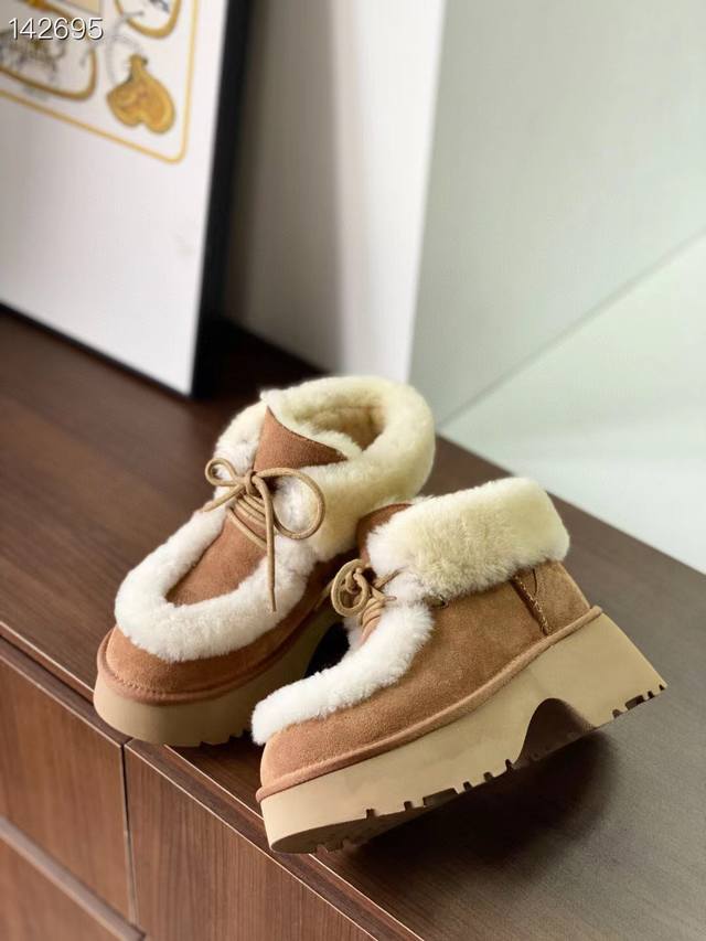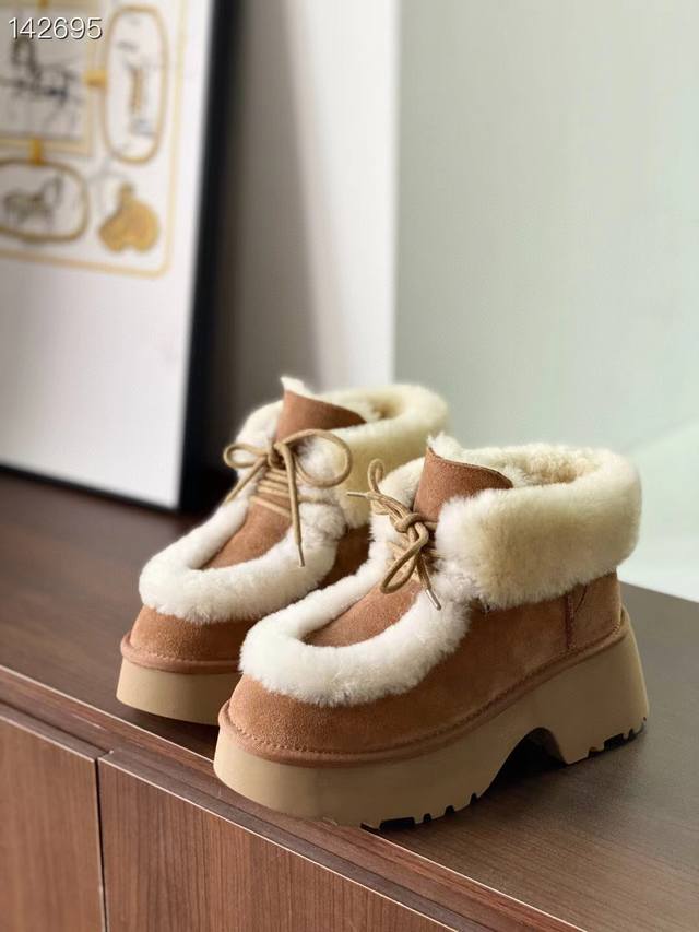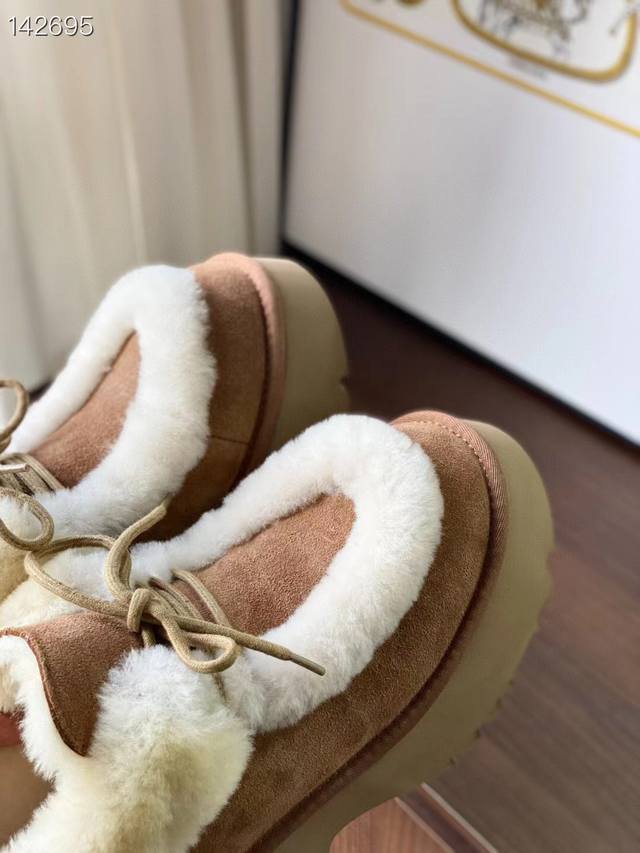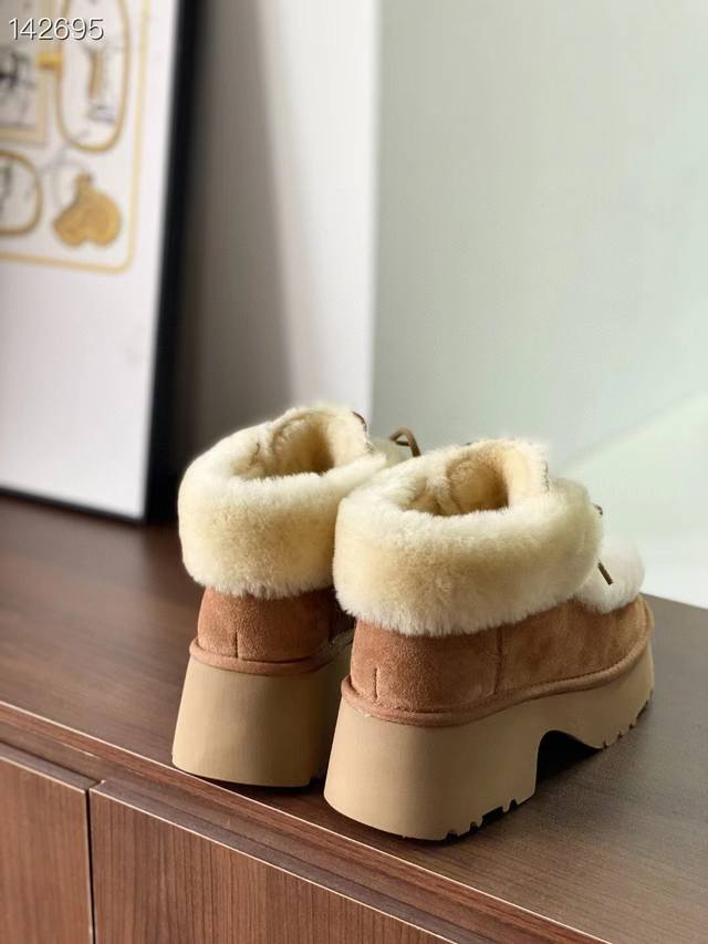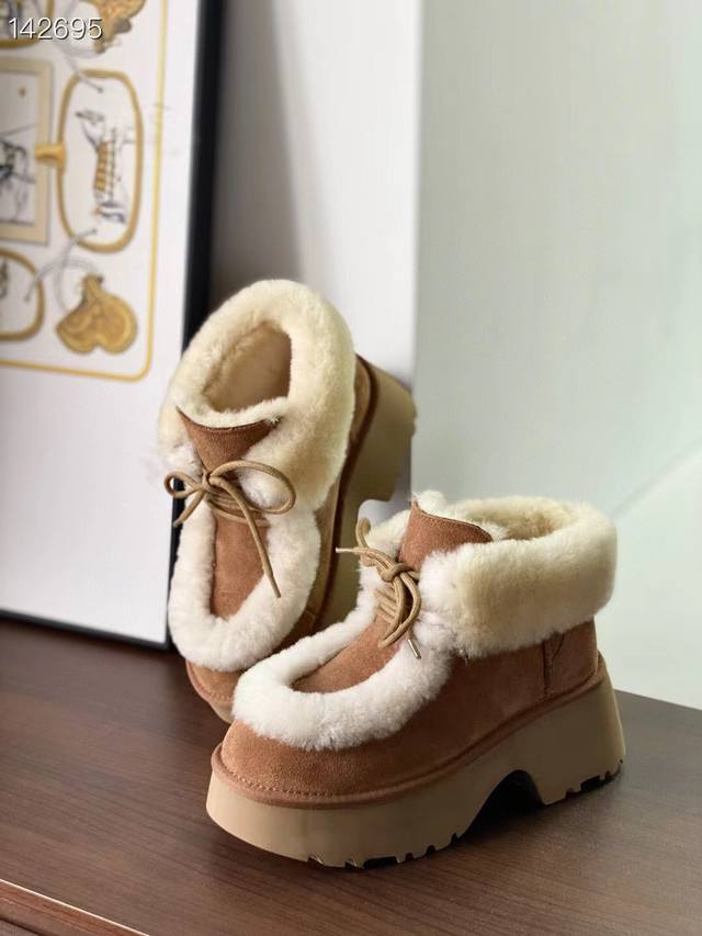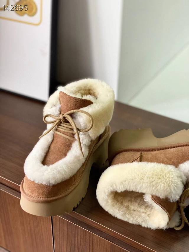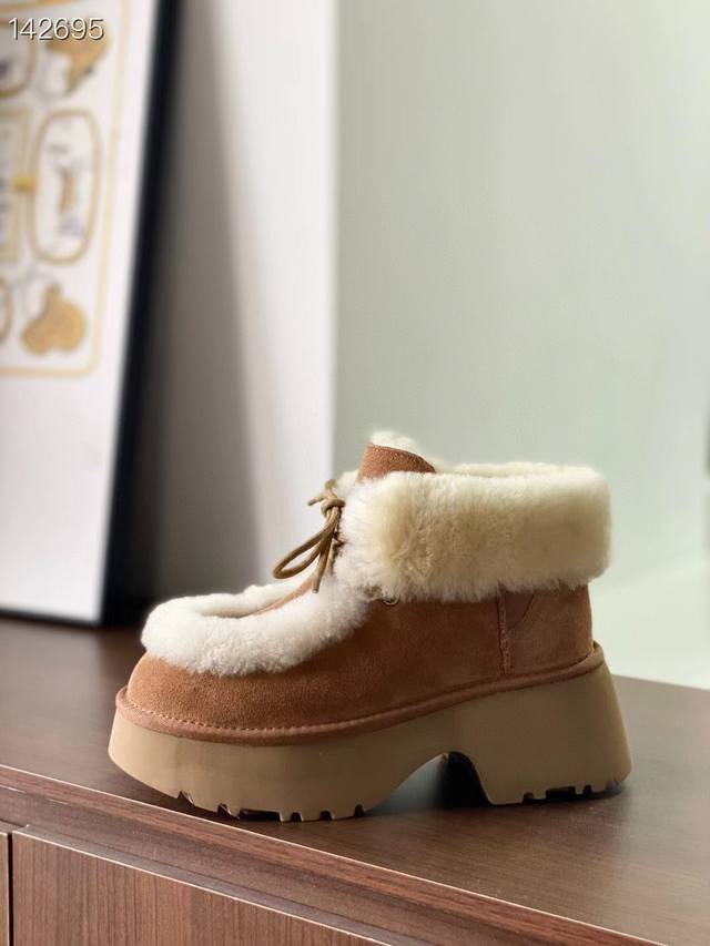/ 纯原正品澳洲Ugg雪地靴 埃斯米坡跟短靴 溢毛系带款 最近爆火的埃斯米系列,真的太爱了 羊皮毛溢毛,温暖又复古~ 兼具设计感与慵懒感的毛毛短靴,怎么搭都松弛有型