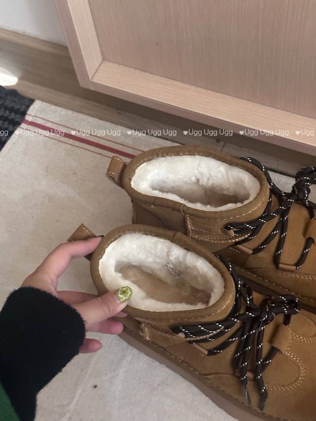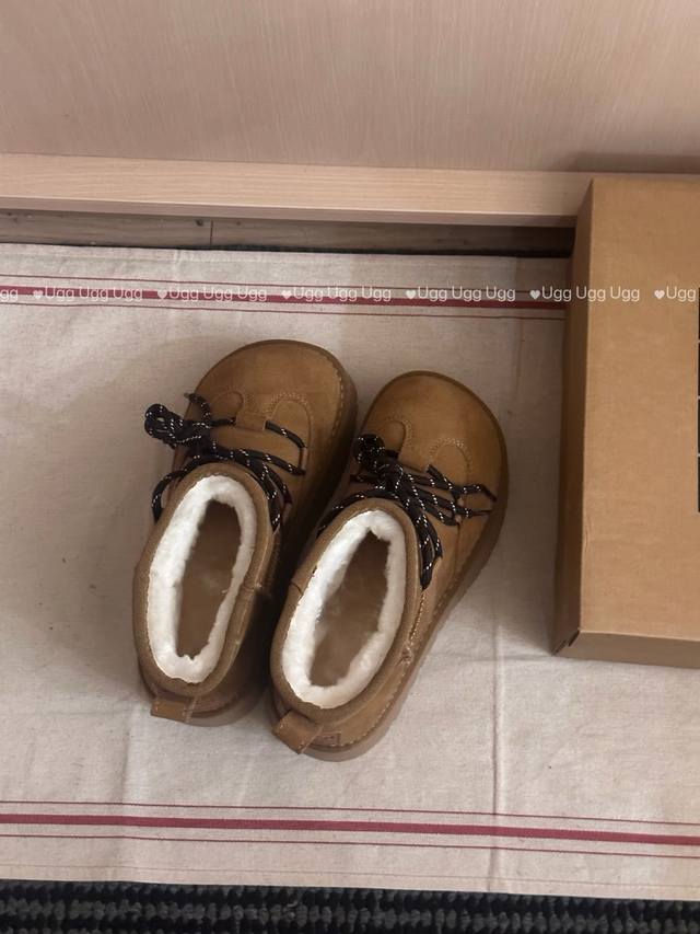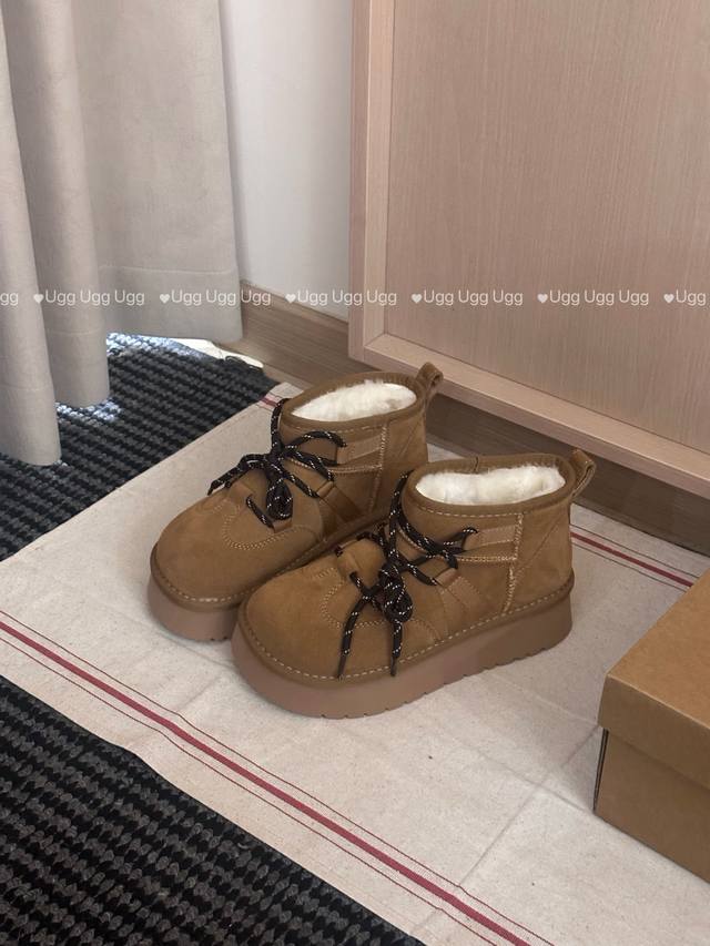 绑带短筒洛奇靴 芒果鞋头 3-4Cm增高 麂皮 Remake绑带设计 内里皮毛一体 超级暖和 Size:35 40