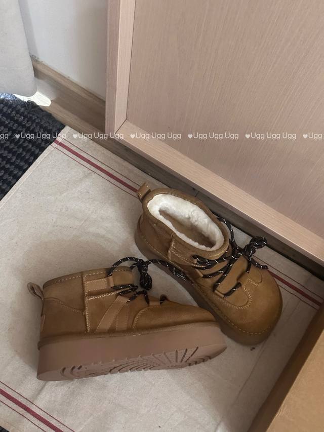 绑带短筒洛奇靴 DDD 芒果鞋头 3-4Cm增高 DDD 麂皮 Remake绑带设计 DDD 内里皮毛一体 超级暖和 DDD Size:35 40 DDD