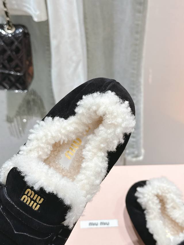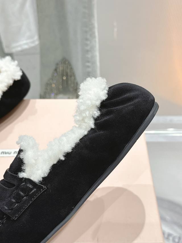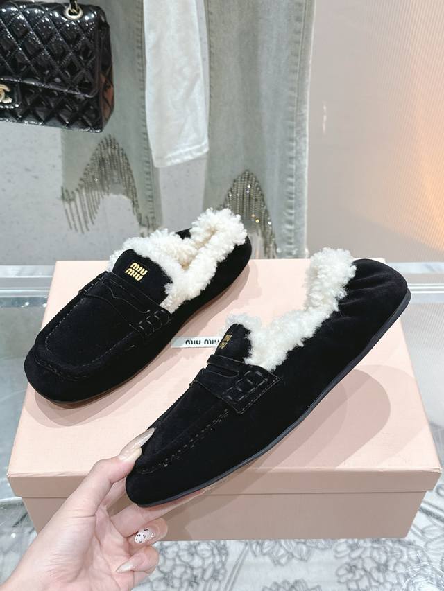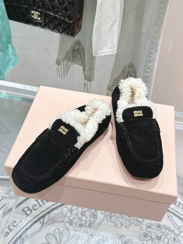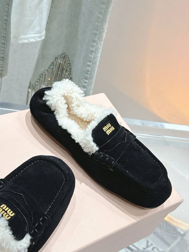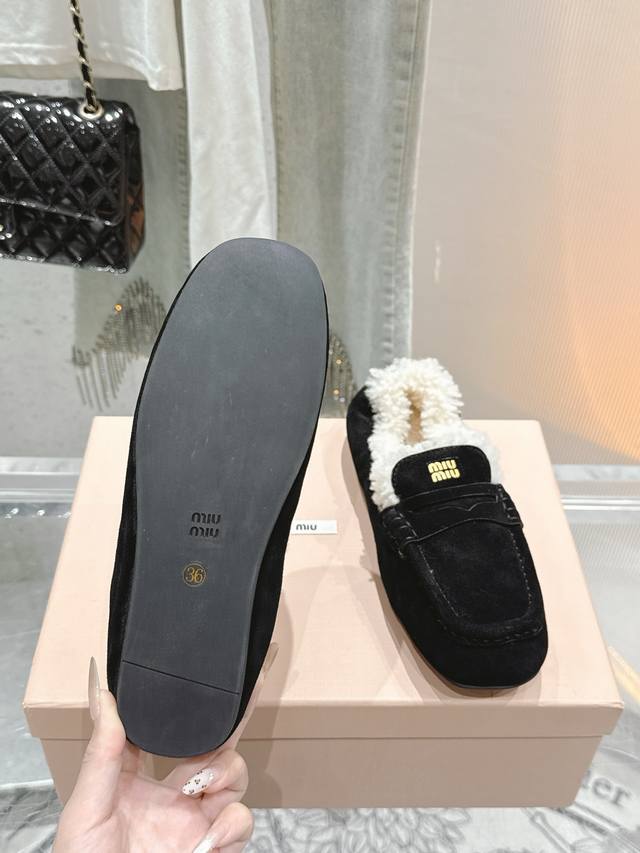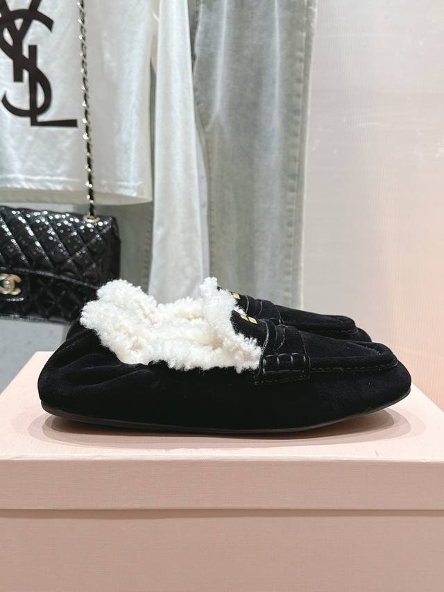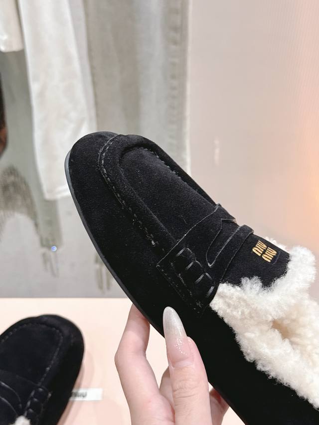 出厂 缪缪2024平底毛毛豆豆托鞋 走秀新款 .复古小皮鞋乐福鞋 豆豆鞋 复古时尚 简约高级 随意搭配...