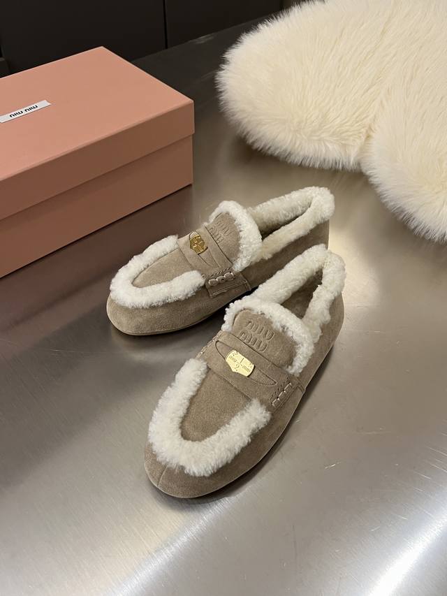 缪缪秋冬新款金币款乐福鞋 100%纯羊毛走秀款 DDD 近几年超流行的老钱风格复古时尚 简约高级 随意搭配 上脚非常舒适鞋面采用金币和压花徽标Logo彰显别具一格的经典格调. DDD 面料原版牛反绒材质 DDD 内里垫脚羊羔毛 DDD 原版开模生胶防滑底 DDD 尺码35-40 DDD