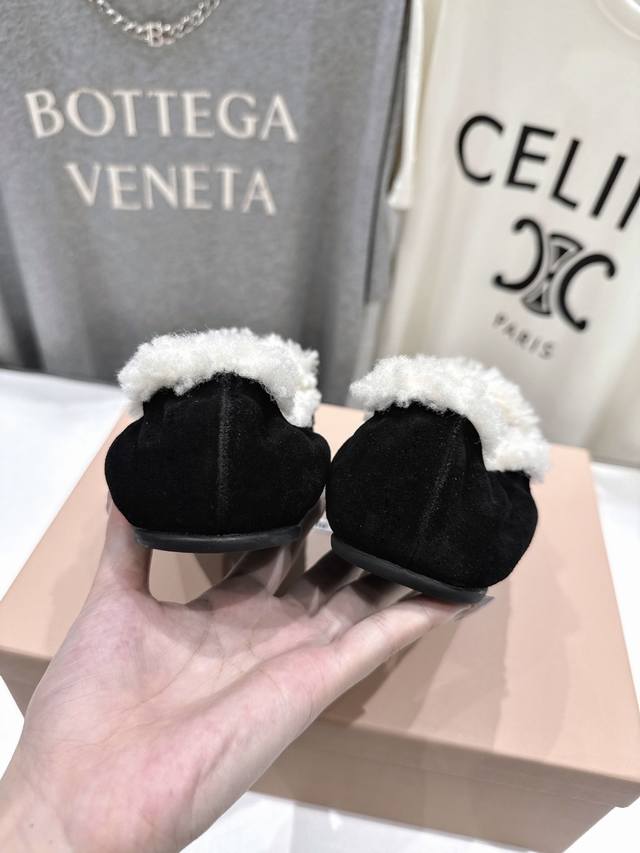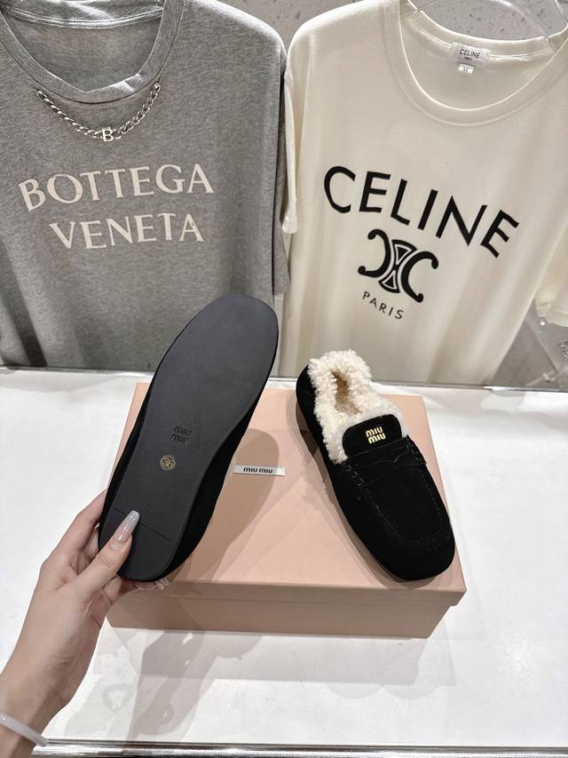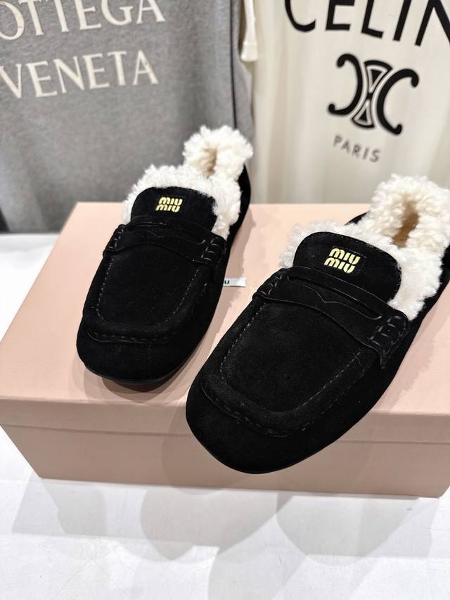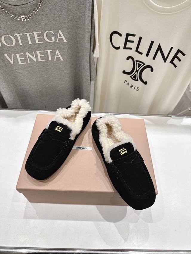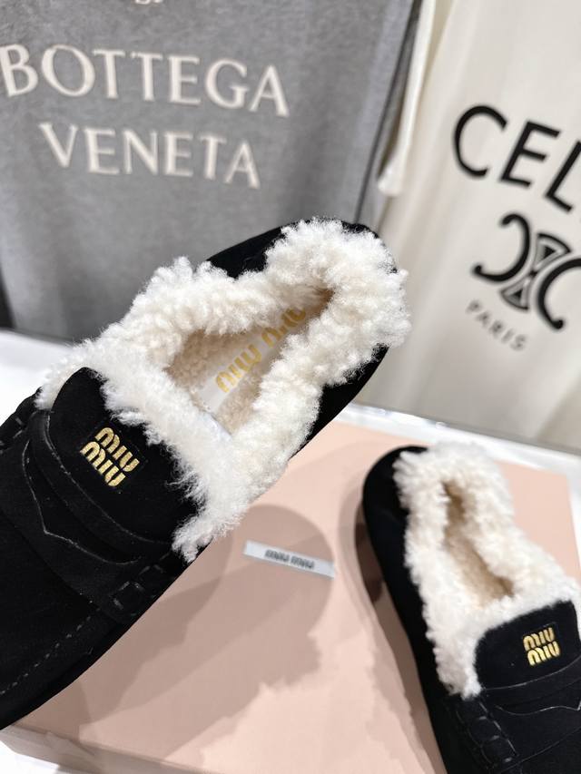 / 缪缪秋冬走秀款一脚蹬驾车鞋加毛乐福鞋毛毛鞋 这款永不过时的反绒皮驾车鞋饰有压花Miu徽标,彰显别具一格的经典格调。 上脚非常舒服超级稳 搭配还是可咸可甜 Zp开