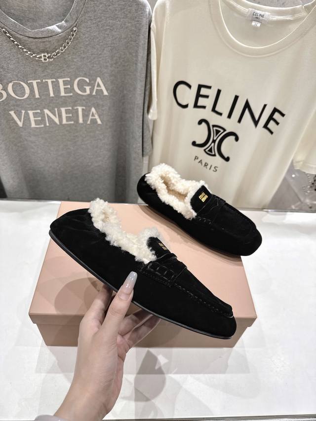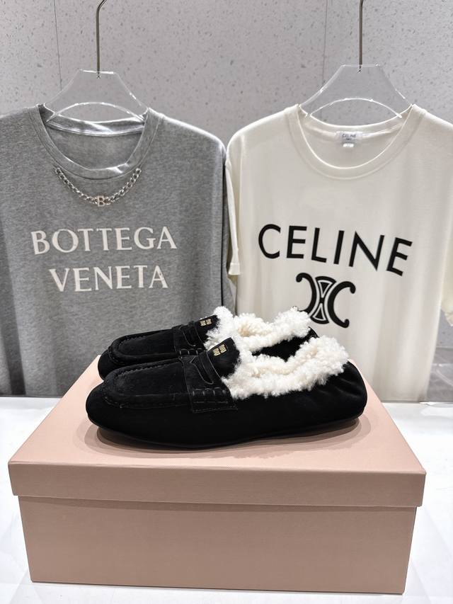 缪缪秋冬走秀款一脚蹬驾车鞋加毛乐福鞋毛毛鞋 这款永不过时的反绒皮驾车鞋饰有压花Miu徽标,彰显别具一格的经典格调。 上脚非常舒服超级稳 搭配还是可咸可甜 Zp开发五金、订制颜色 鞋面:定制进口高丝光牛反绒 内里:进口羊卷毛 鞋底:Zp开模橡胶大底 码数:35-40 40.41定制 全套包装