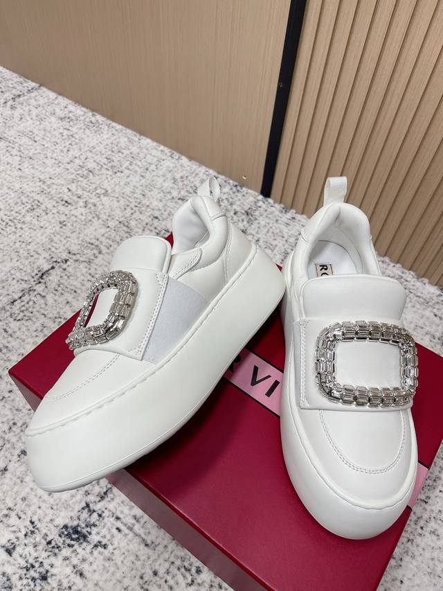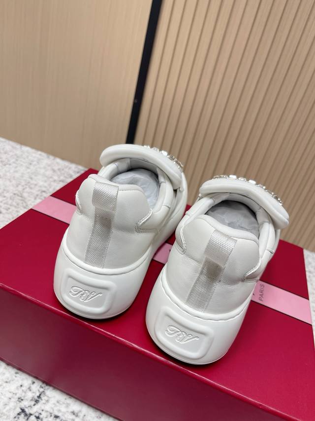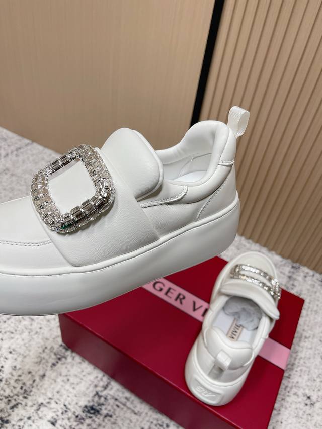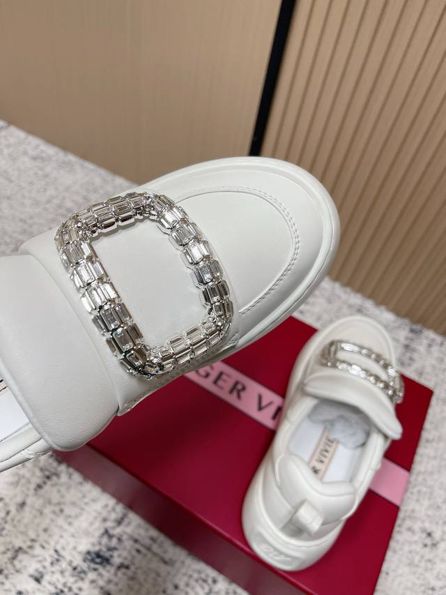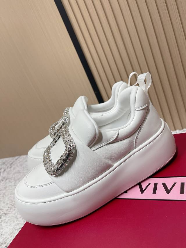 / 罗杰维维亚 代购级别 最新款Viv'up 泡芙鞋 面包小白鞋 软萌小胖丁. 鞋面:定制牛皮 内里垫脚:原版羊皮 大底:原版开模Eva大底 厚底:5Cm 码数:3
