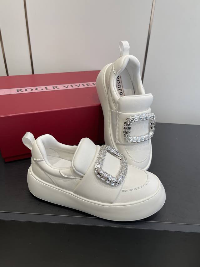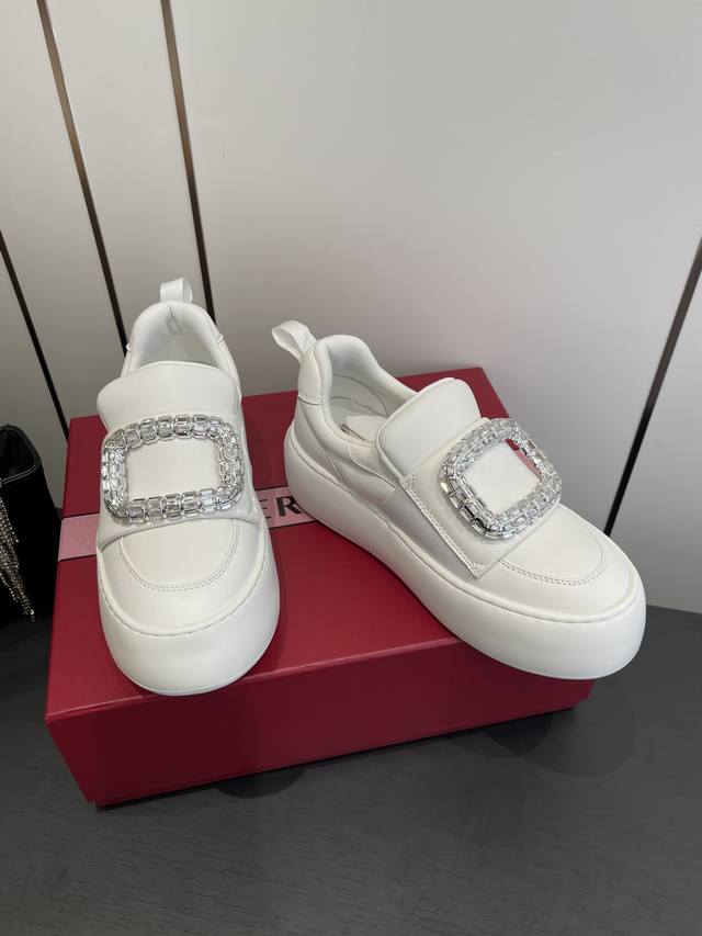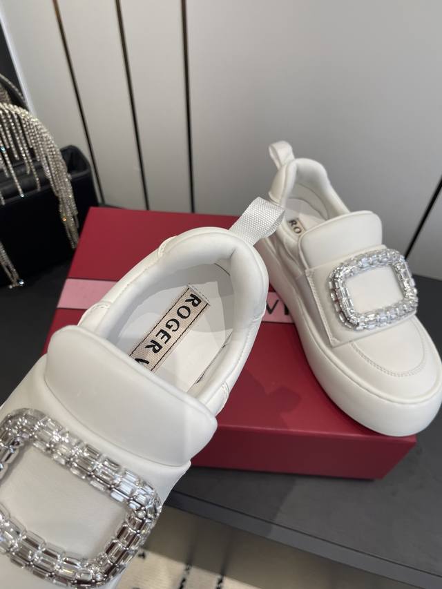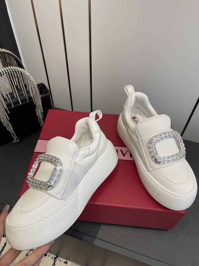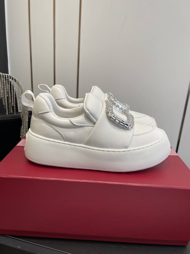 FFF 罗杰维维亚 Rv 钻扣厚底小白鞋 面包鞋 DDD 梦中情鞋Rv钻扣小白鞋 轻运动风潮来袭 简便运动鞋以鞋底花型图案令人眼前一亮 巧妙释合都市时尚与实用功能 本款运以柔软皮革制成 点缀闪钻饰扣 鞋底超级柔软 重量超级轻 高度5Cm 做工细节完美 上脚非常舒适 高雅百搭. DDD 鞋底原版定制橡胶发泡大底 DDD 材质 原版定制绵羊皮 DDD 内里 羊皮 DDD 码数:35-40 40 41定做 DDD