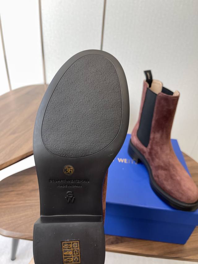 羊京 牛皮 Stuart Weitzman 秋冬新款 短靴 顶级版本 经典简约风格!中筒设计很帅气哦!Sw家的鞋子越穿越上头,专业做鞋子的真的没得说圆润鞋头适合不同脚型的小伙伴,上脚非常舒适! 说到近两年秋冬最受时髦精欢迎的鞋类单品,毋庸置疑是骑士靴了,无论是搭短裤、短裙还是小脚裤,无一不时髦甜酷。此外,骑士靴还是专治小腿弯曲不直、小腿肉赘肉多的法宝,谁穿谁是腿精!!黑色酷帅 魅力难挡,显得更有气质,上脚不仅有范儿而且还能让双腿显瘦加倍 骑士靴真的是非常经典复古的存在! 鞋面进口意大利小牛皮 进口羊京 内