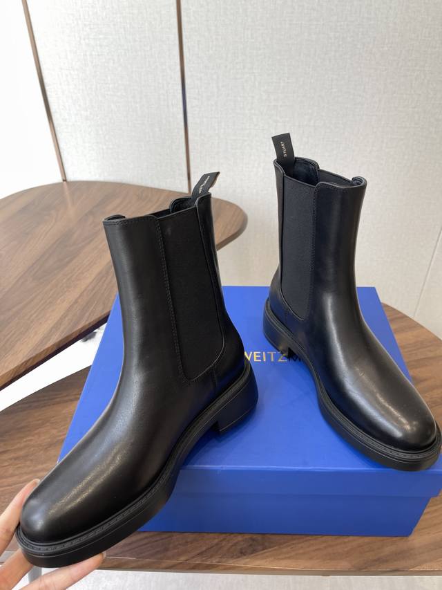 羊京 牛皮 Stuart Weitzman 秋冬新款 短靴 顶级版本 经典简约风格!中筒设计很帅气哦!Sw家的鞋子越穿越上头,专业做鞋子的真的没得说圆润鞋头适合不同脚型的小伙伴,上脚非常舒适! 说到近两年秋冬最受时髦精欢迎的鞋类单品,毋庸置疑是骑士靴了,无论是搭短裤、短裙还是小脚裤,无一不时髦甜酷。此外,骑士靴还是专治小腿弯曲不直、小腿肉赘肉多的法宝,谁穿谁是腿精!!黑色酷帅 魅力难挡,显得更有气质,上脚不仅有范儿而且还能让双腿显瘦加倍 骑士靴真的是非常经典复古的存在! 鞋面进口意大利小牛皮 进口羊京 内