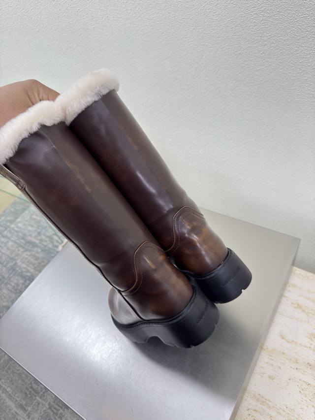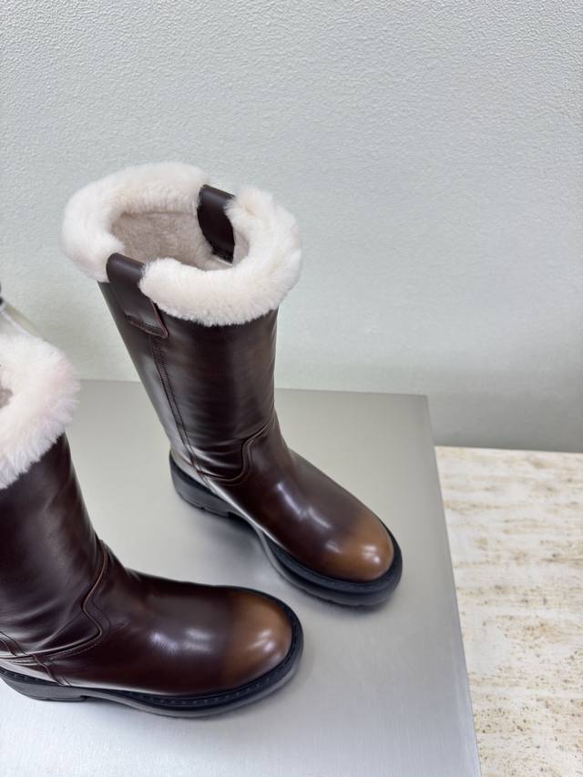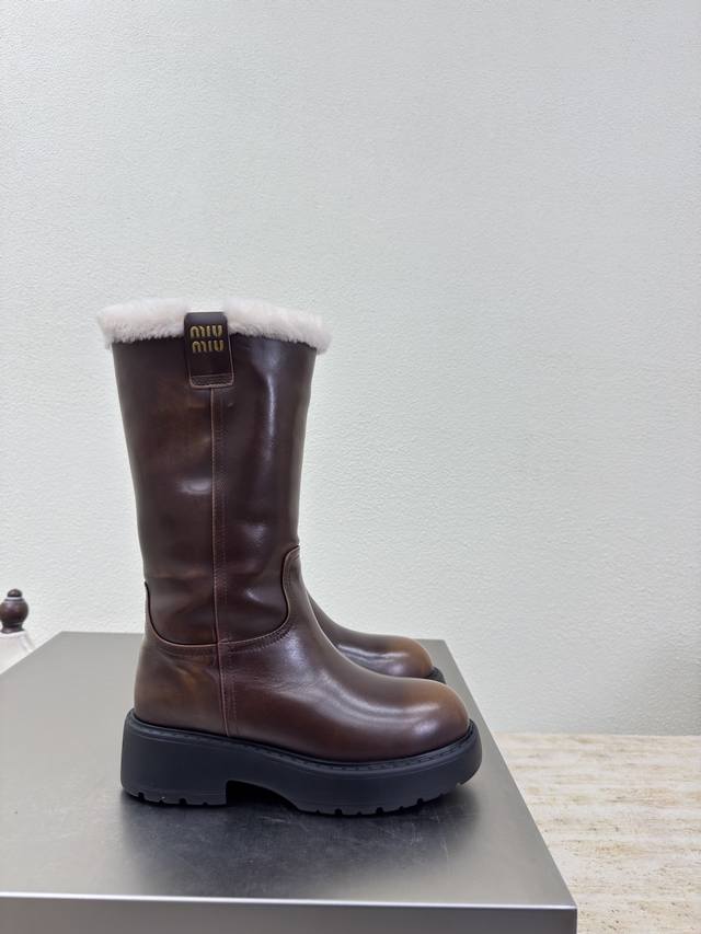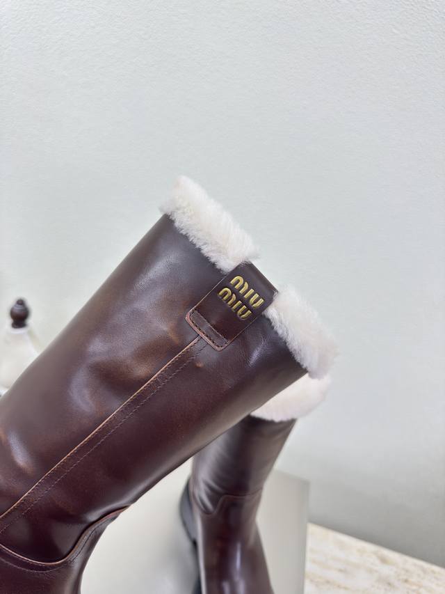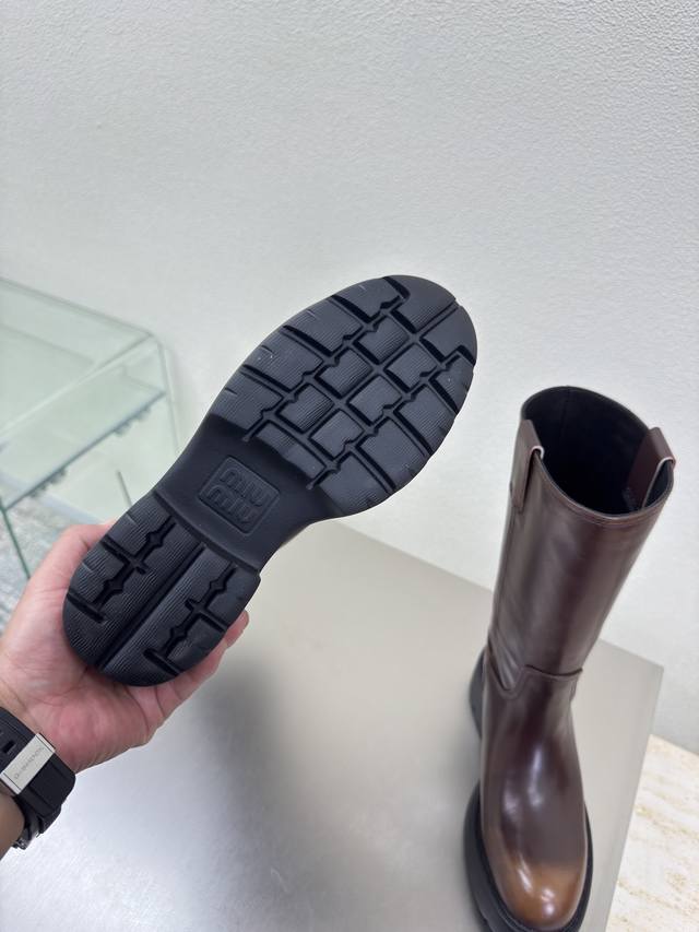 羊毛里 厚底高靴 Miu'miu 乐福鞋 擦色棕小牛皮 立体金属Logo 厚底 设计 系列 Miu'miu 经典舒适 制作 原版一致 成型大底 高版本 面料 头