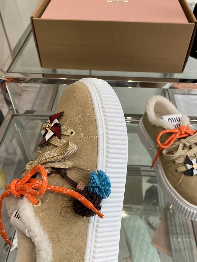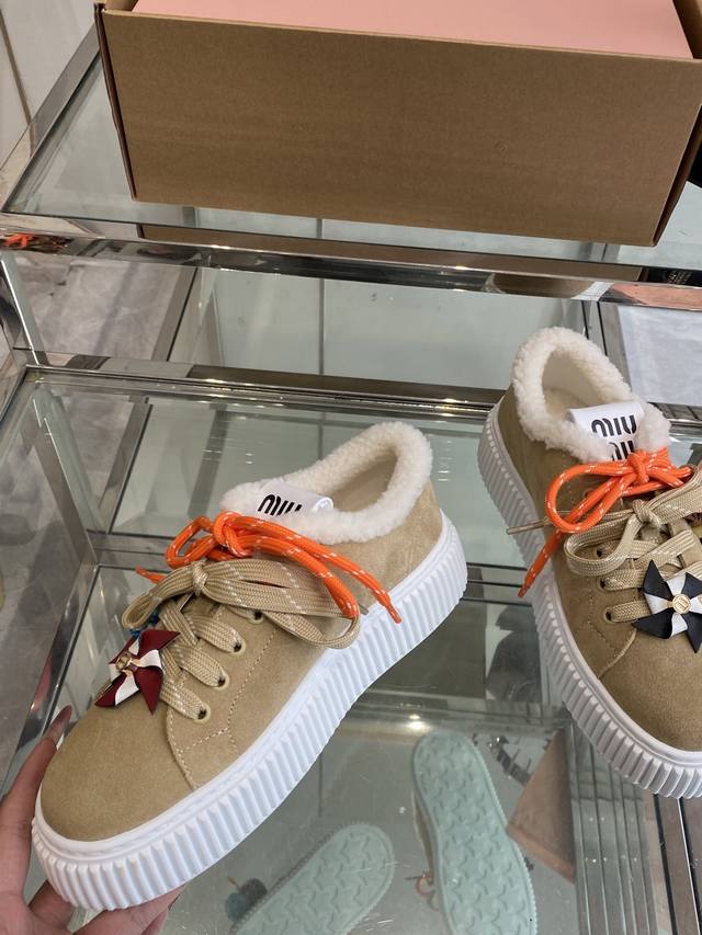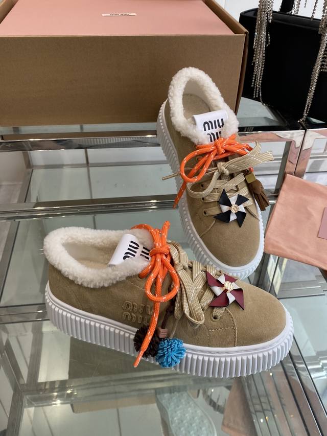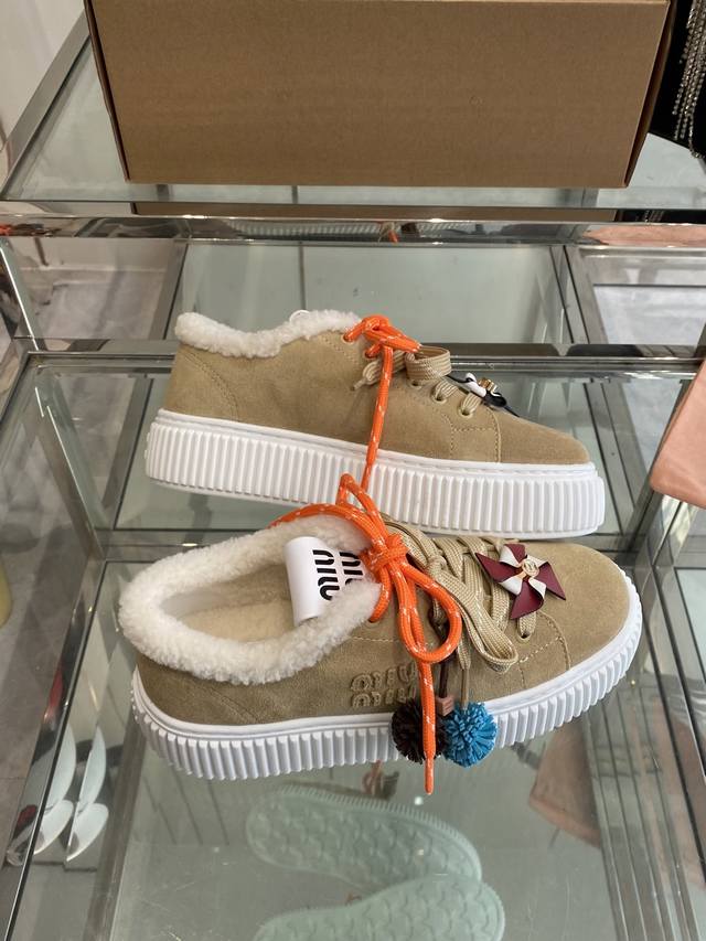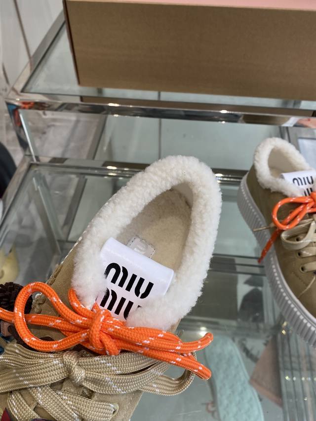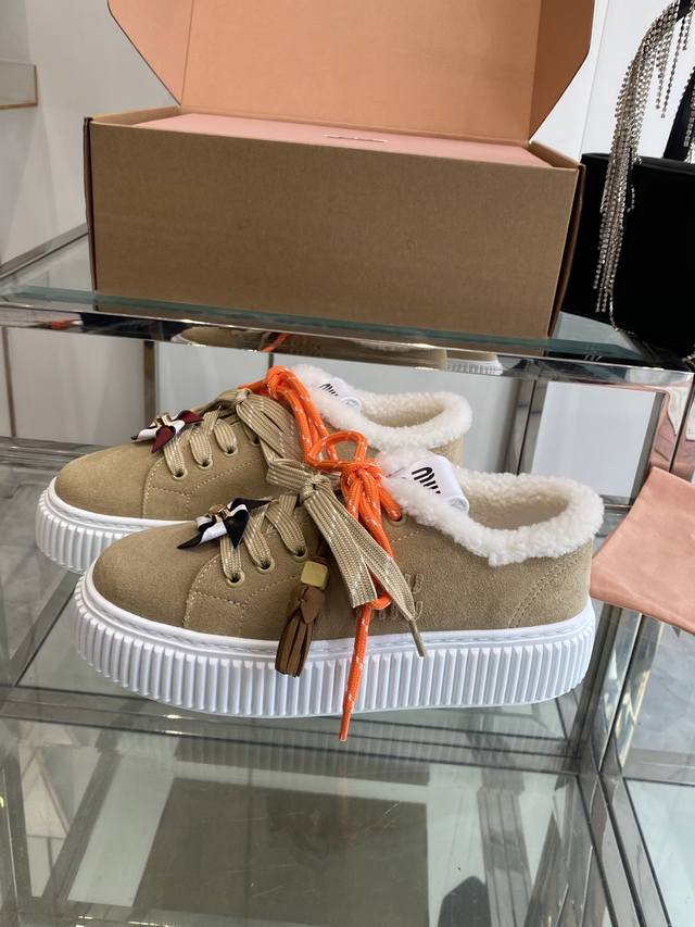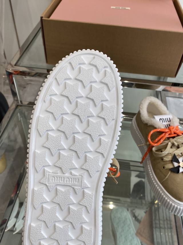 羊毛里 Miu Miu 缪缪 25Ss秋冬新款 厚底休闲小白鞋 顶级原版面料质感满满,搭配经典3D立体字母刺绣,刺绣Logog立体饱满,瞬间点亮整体造型,辨识度Up!Ip超轻发泡大底!轻盈高弹.无论是日常出街还是度假旅行,它都能轻松Hold住场面。穿上它,你就是街头最靓的崽! 鞋面:进口高丝光牛反绒 内里:羊皮内里 羊羔毛内里 大底Ip发泡大底 码数:35-40 40.41订做