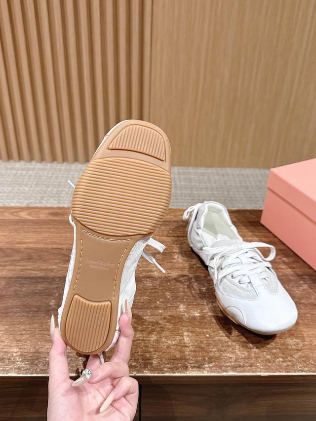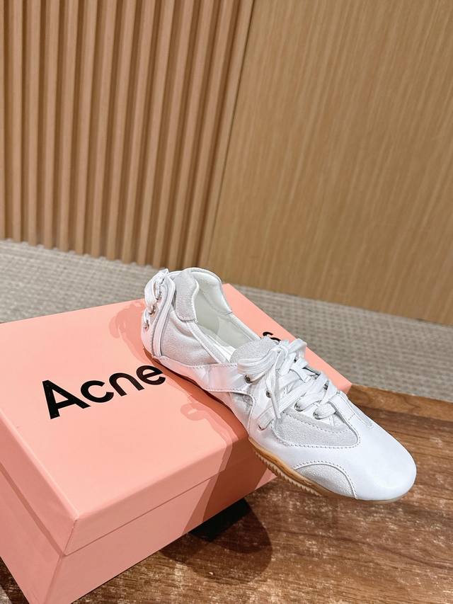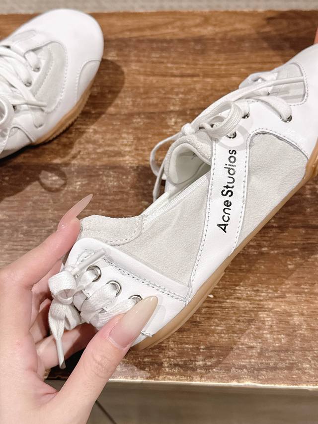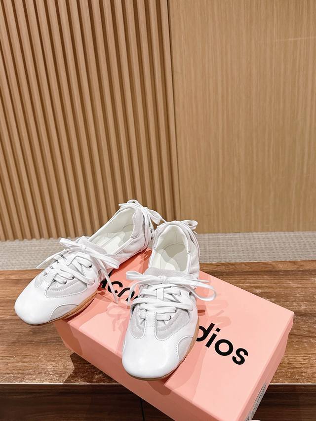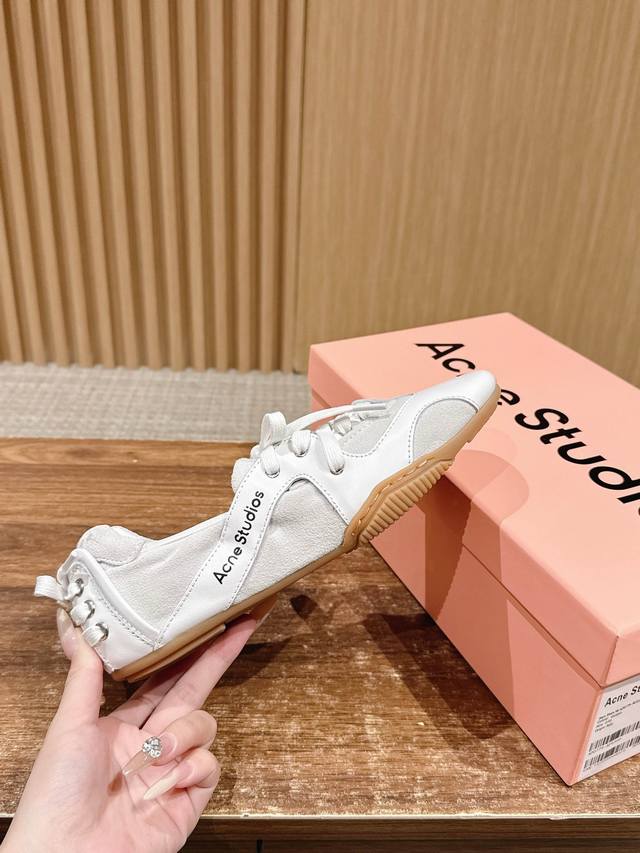 艾克妮新款芭蕾舞运动鞋 DDD 将运动鞋与当下热门的芭蕾舞鞋元素结合首次推出芭蕾舞运动鞋 DDD 整双鞋也参考了芭蕾舞女演员真实穿的足尖鞋,打造前半段的绑带设计,脚后跟的地方也有交叉绑带,船型鞋身、窄长楦头等等,都和足尖鞋有几分相似。 DDD 鞋面采用带有纹路的饰面皮革制成,鞋后方还有精致的装饰性绑带,搭配无缝橡胶鞋底,是一双兼具浪漫与街头感的平底鞋。 DDD 了首次推出共有米色与淡蓝色两种配色,米色做了裂纹效果,淡蓝色则是丹宁材质,水洗的仿旧色泽很有复古的味道。 DDD Size:35-39 40定做不