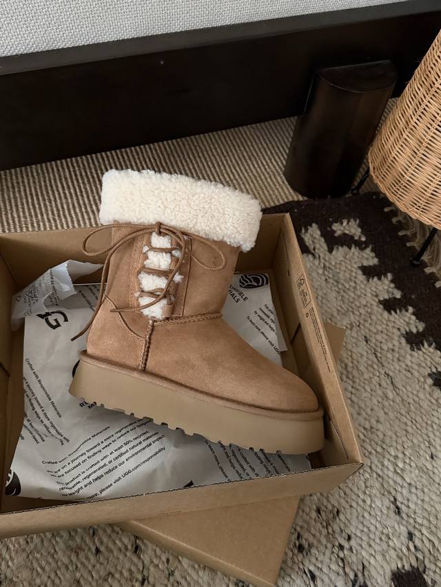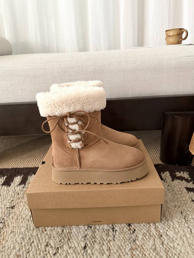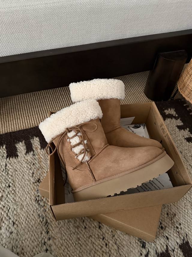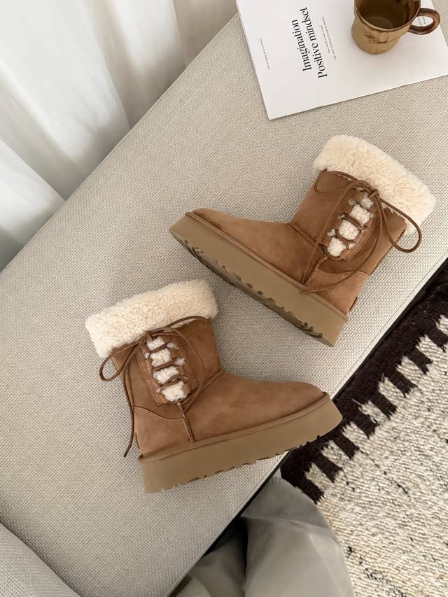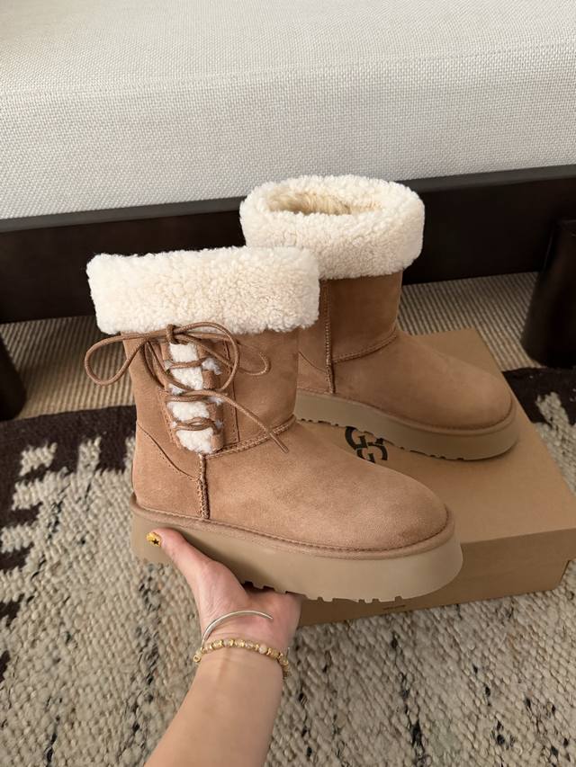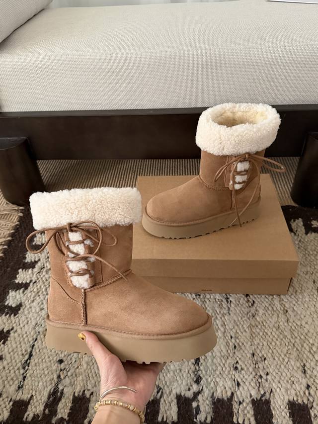 芭蕾系带厚底靴 中筒 DDD 鞋口泰迪卷毛超可爱 DDD 中筒百搭 拉长腿型 DDD 羊皮毛一体 冬季穿搭首选! DDD Size: 35 40 DDD