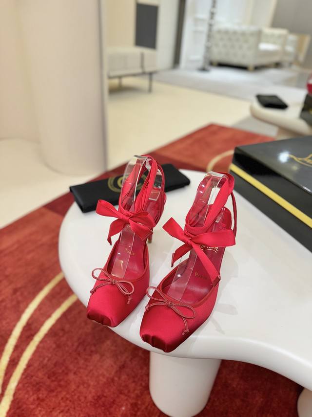 / 芭蕾舞鞋W. Cassia Lace Up高跟鞋是克里斯蒂安 卢布托 Christian Louboutin “天赋”的证明,它有一个方形脚趾。灵感来自芭蕾舞鞋