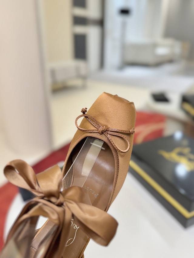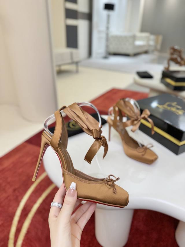 芭蕾舞鞋W. DDD Cassia Lace Up高跟鞋是克里斯蒂安 卢布托 Christian Louboutin “天赋”的证明,它有一个方形脚趾。灵感来自芭蕾舞鞋,它们完全由黑色绸缎制成。通过格罗斯格兰装饰,它搭载在100毫米的高跟鞋跟上,并用缎带系在脚踝上。 DDD Size:35码-43码 DDD 40.41.42.43.定做不退不换。43.码10 DDD 颜色:黑 杏 印花 DDD 大底:真皮大底 DDD 跟高:10Cm DDD