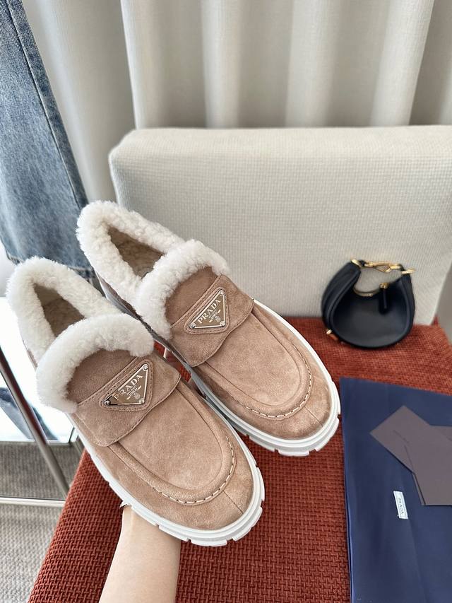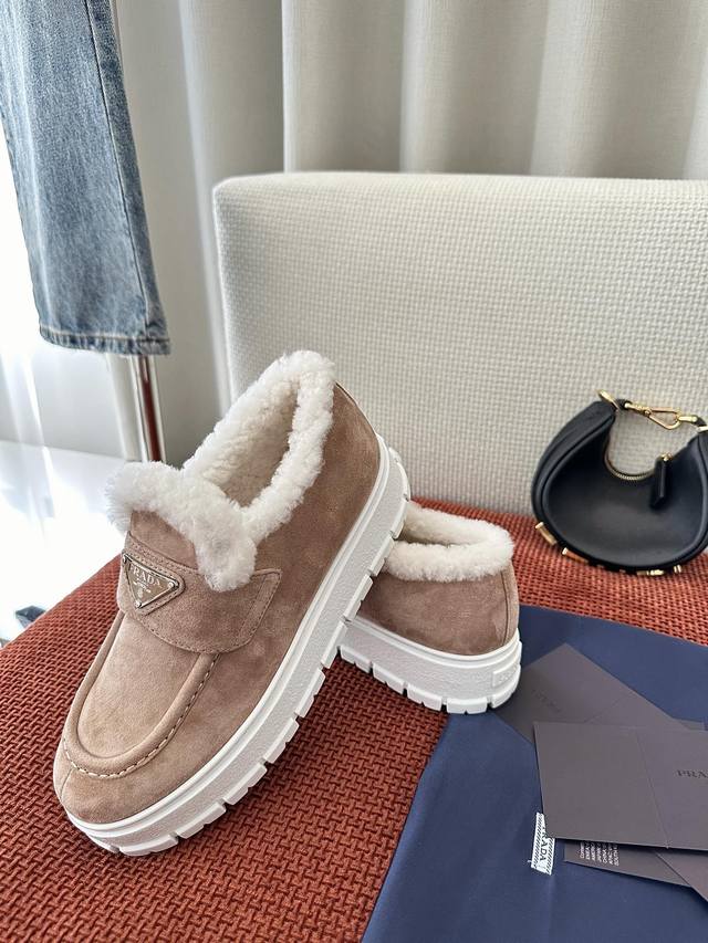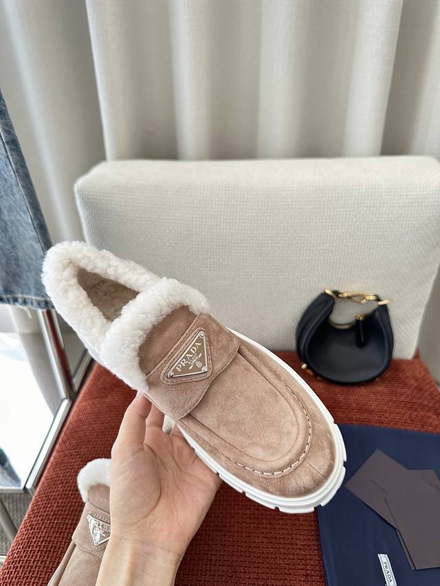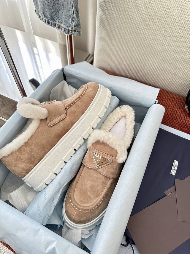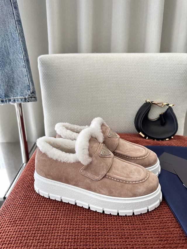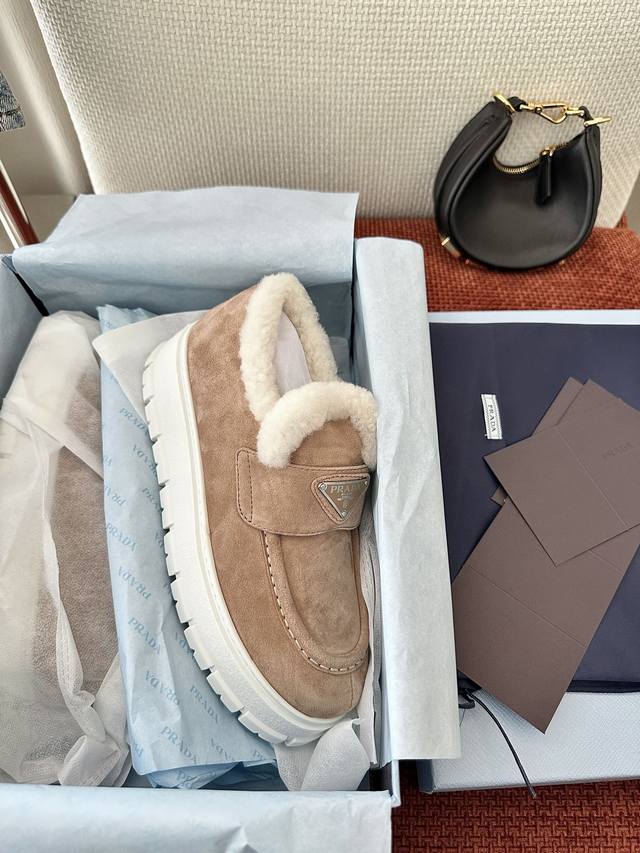 莞产 DDD *三角标厚底羊羔毛运动鞋 |原版购入代购级别 DDD -驼色 DDD 材质与工艺: DDD 原版麂皮革面料 DDD 涂法琅金属三角形徽标 DDD 羊羔毛鞋舌与衬里 DDD 后帮饰Logo字母 DDD 橡胶凹纹鞋底 DDD Size:35-41 DDD