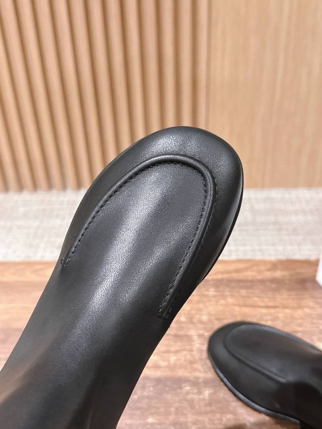 莞产 #中筒靴 极简高级平底靴 简单更新一下 The Row 单靴 这个款更像一个春秋款 整体自重很轻穿上柔软舒适亲肤 很适合日常走路比较多的朋友 依旧Row家
