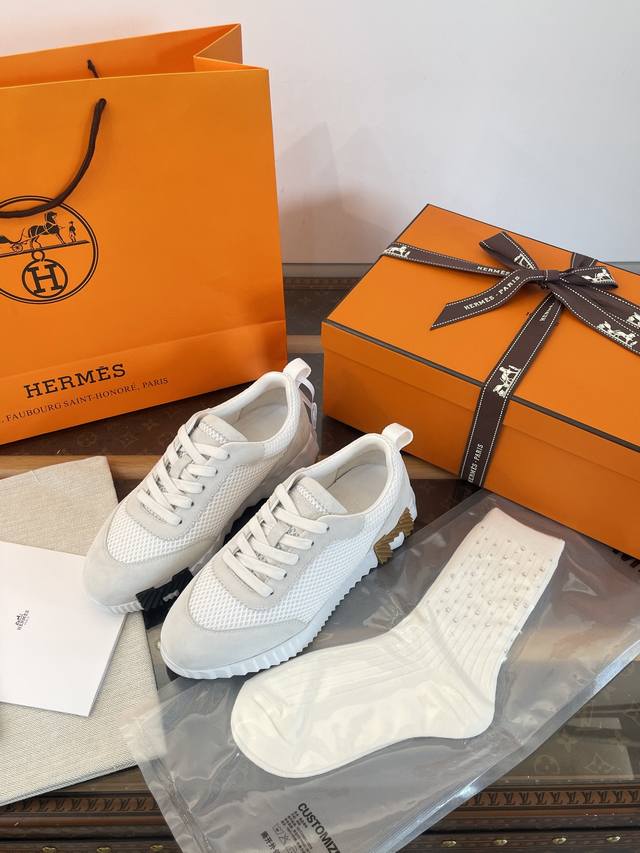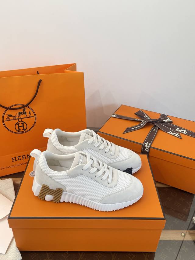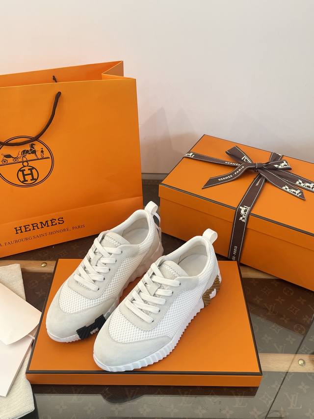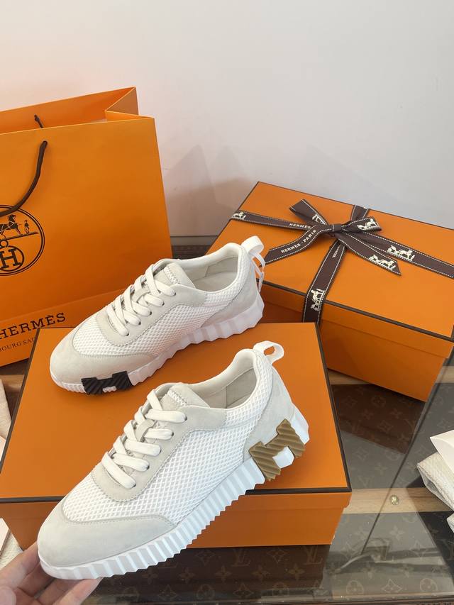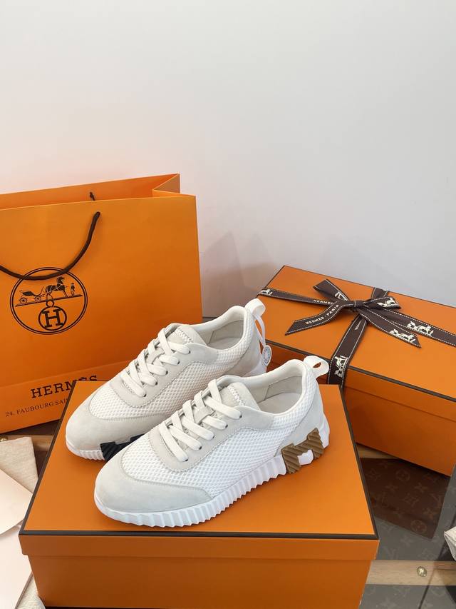 莞产 * 爱马家增高休闲运动鞋 莞大厂顶级代购品质 超代购品质~出入无压力 Herm*Es Bouncing运动鞋 舒适+颜值+增高 4Cm轻便厚底~增高又显瘦