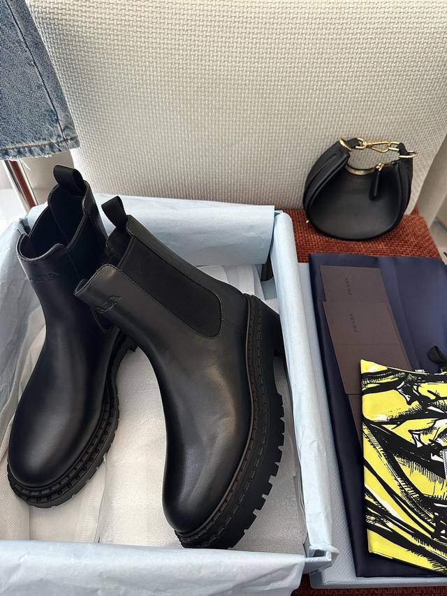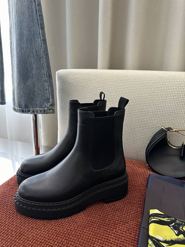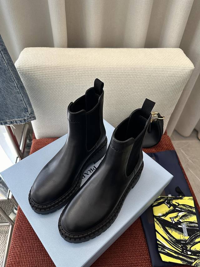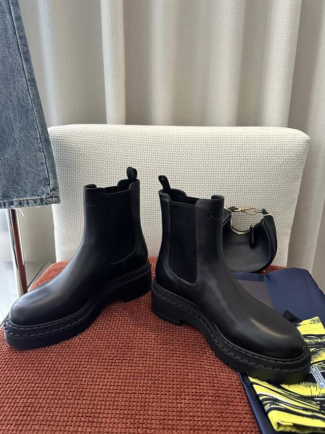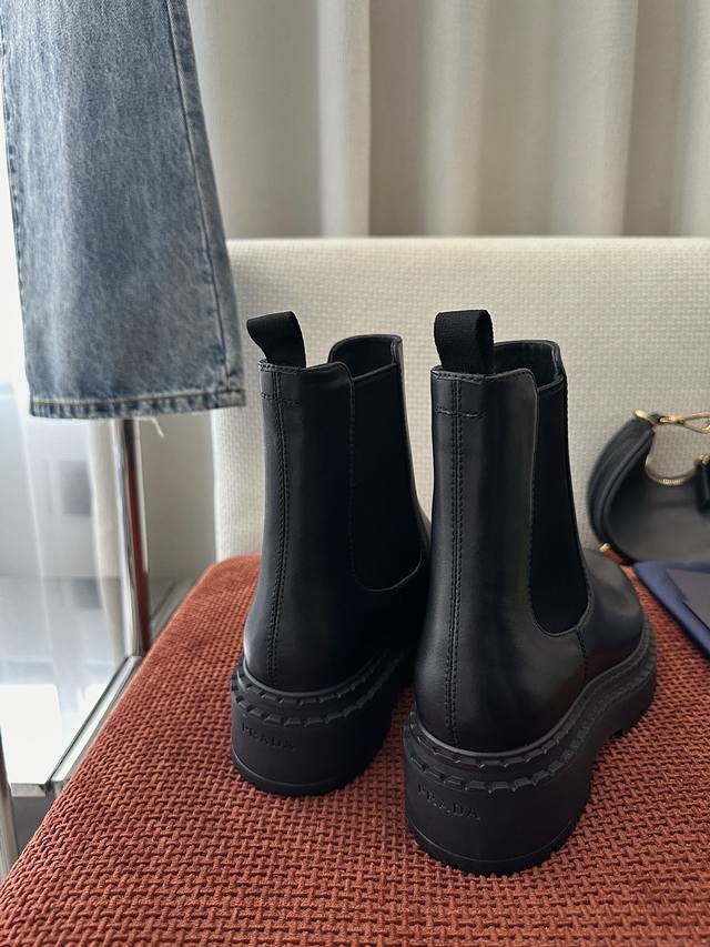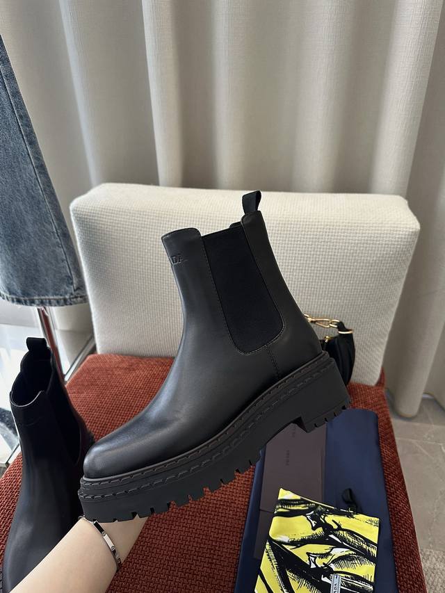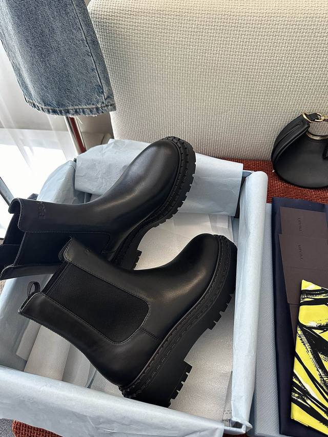 / 莞产 *秋冬新品皮革切尔西短靴|原版购入代购级别 -黑色 材质与工艺: 原版牛皮革面料 皮革里衬 鞋面配侧面弹力拼接和拉袢 热压徽标 锯齿状橡胶沿条 5.5Cm