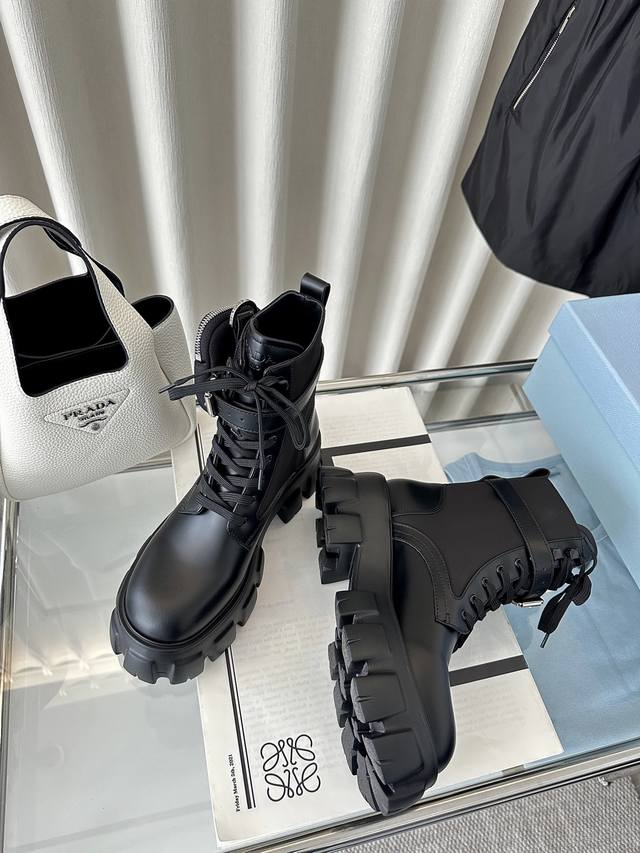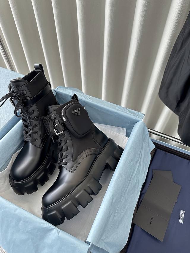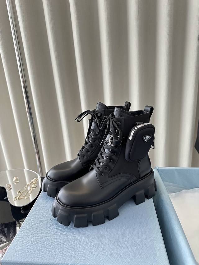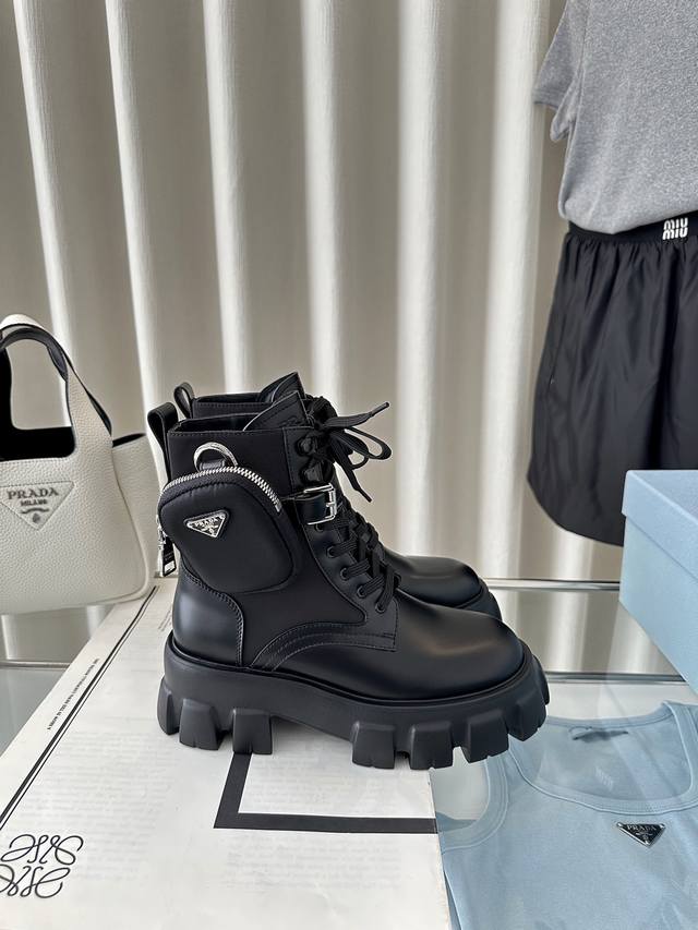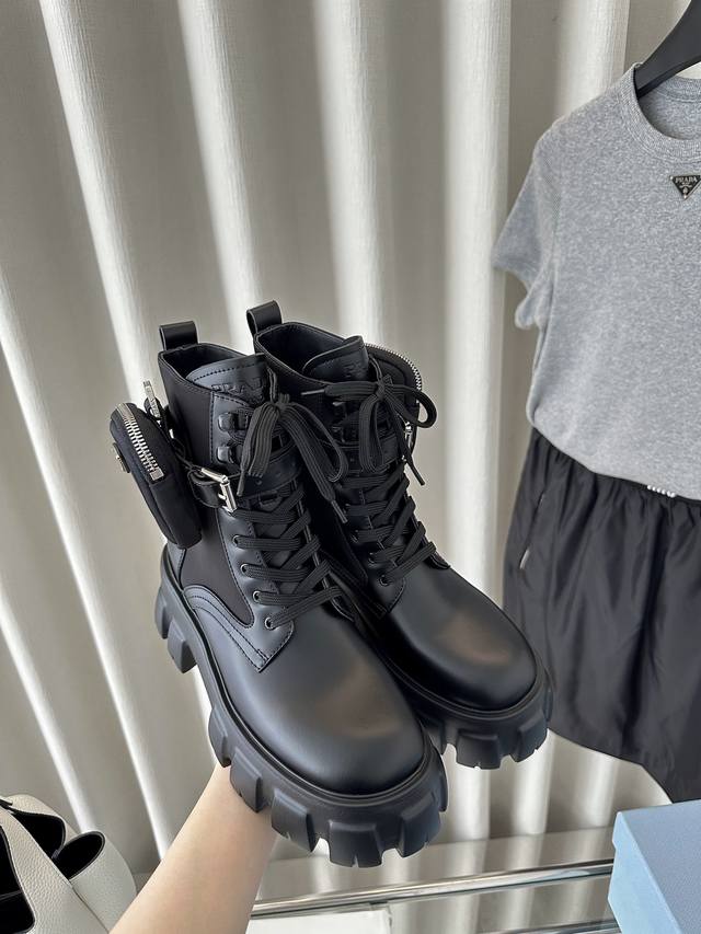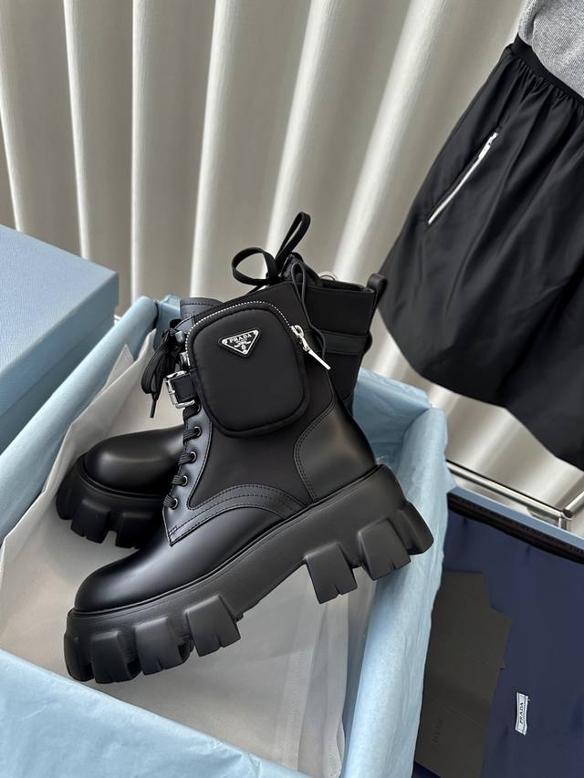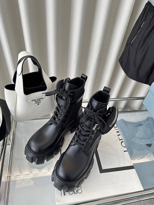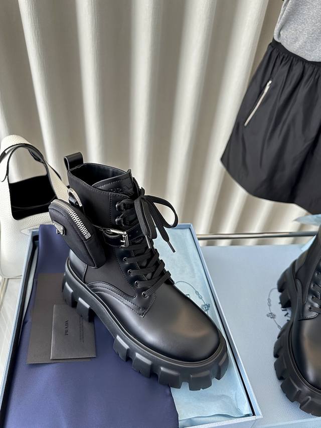 莞产 DDD * 经典Monolith系列口袋短靴 |原版购入代购级别 DDD -黑色哑光 DDD 材质与工艺: DDD 原版牛皮革+尼龙材质 DDD 定制牛皮内里 DDD 侧边可拆卸饰带、配尼龙小袋 DDD 16厘米靴筒 DDD 5.5Cm一体式轻质凹凸纹大底 DDD Size:35-40 DDD