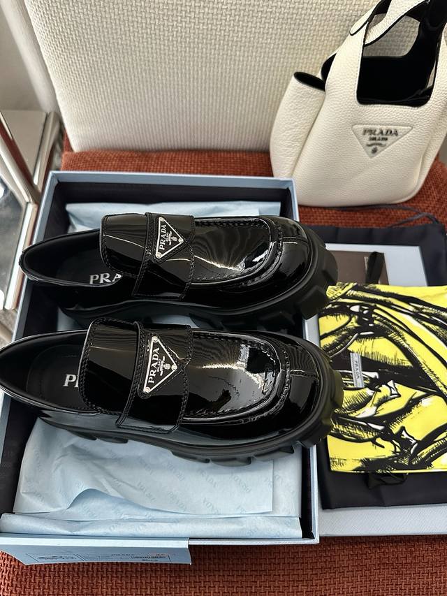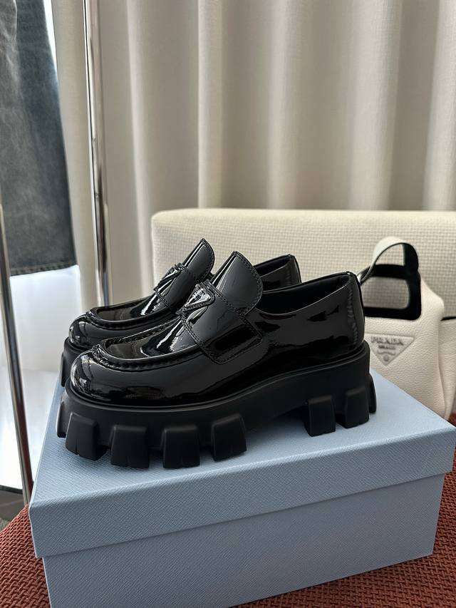 莞产 DDD *经典Monolith系列齿轮厚底三角标乐福鞋 |原版购入代购级别 DDD -漆皮 DDD 材质与工艺: DDD 原版牛皮革面料 DDD 皮革饰带和金属三角形徽标 DDD 鞋头盖配凸起式缝线饰边 DDD 皮革内里 DDD 5.5Cm海绵橡胶凹凸纹鞋底 DDD Size:35-40 DDD