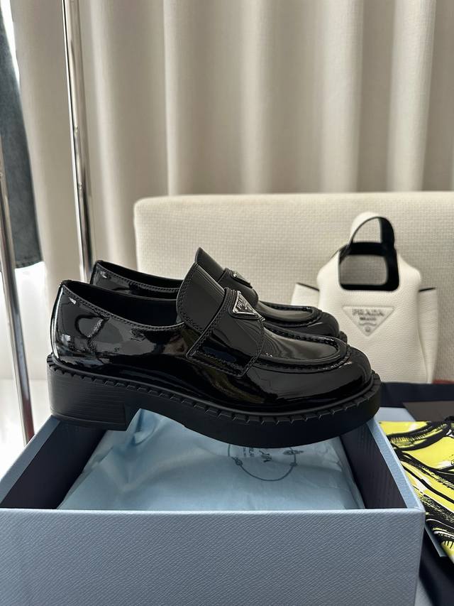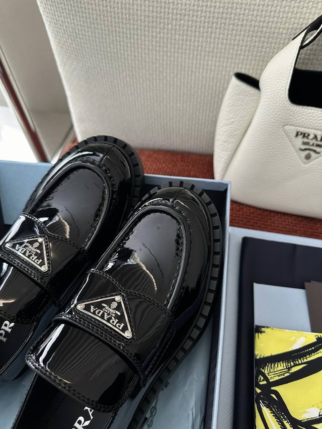 莞产 DDD *超火 经典三角徽标乐福鞋|原版购入代购级别 DDD -漆皮 DDD 材质与工艺: DDD 原版牛皮革 DDD 原版牛皮内里 DDD 鞋头盖配间面线卷边 DDD 涂珐琅金属三角形徽标 DDD 锯齿状橡胶沿条 DDD 5Cm一体式橡胶大底饰热印徽标 DDD Size:35-40 DDD