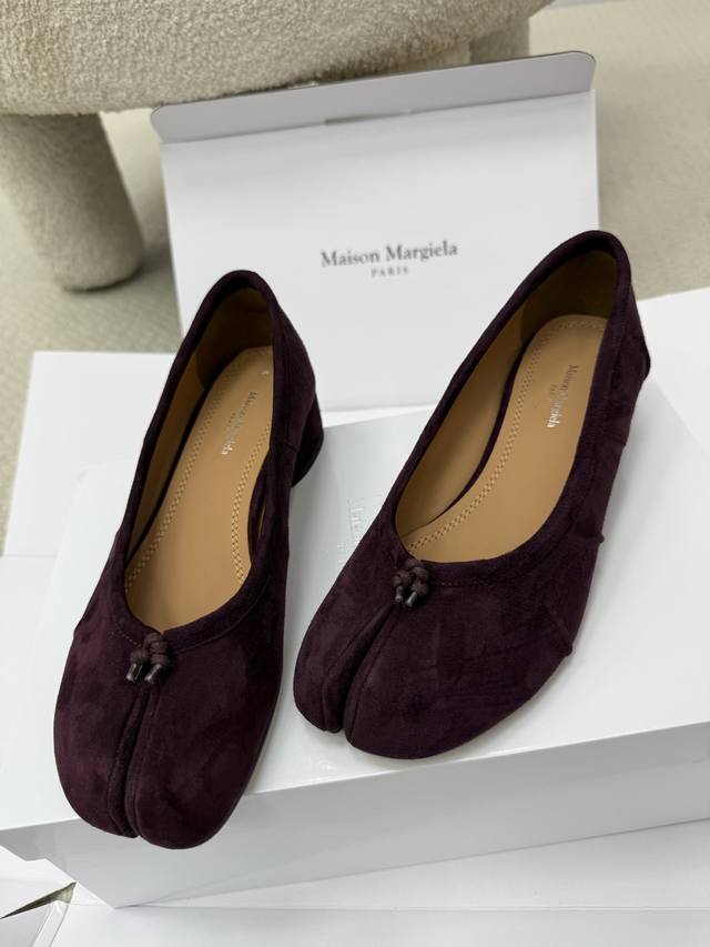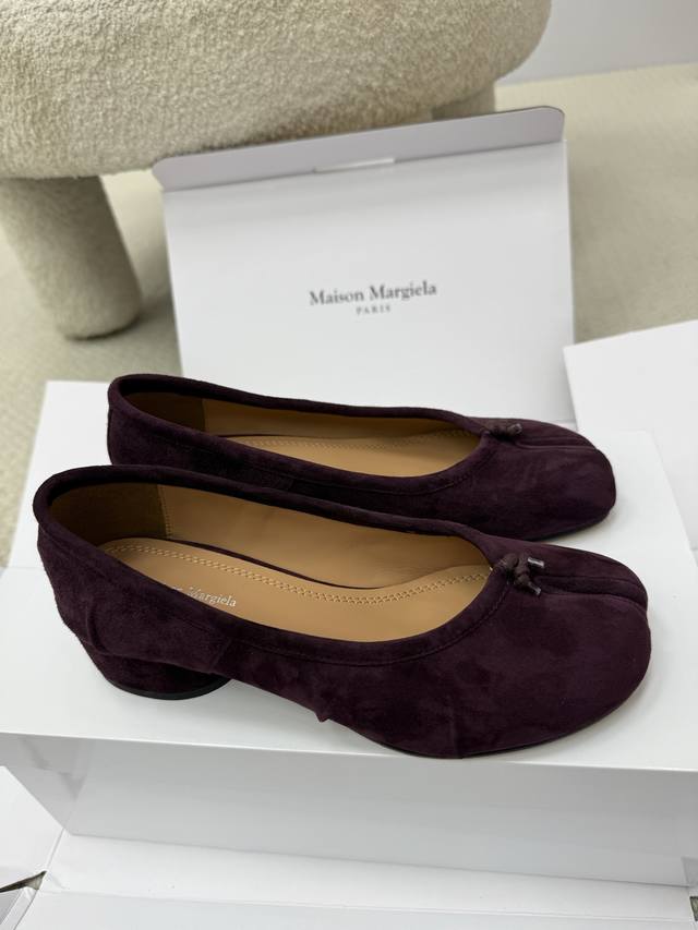 莞产 DDD * * 超火Tabi分趾褶皱 DDD 3Cm低跟芭蕾鞋|原版购入代购级别 DDD -紫色羊京 DDD 独家原版定制紫色羊京 DDD 定制水染皮革里衬 DDD 垫脚饰有Logo压印 DDD 意大利产真皮底 DDD Size:35-40 DDD