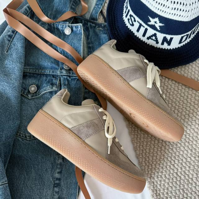 莞产 DDD * * 25Ss新款拼接厚底增高德训鞋|原版购入代购级别 DDD 进口纳帕革和绒面皮革 DDD 定制皮革里衬 DDD 鞋舌饰有品牌数字压印 DDD 后跟小线标设计 DDD 开模橡胶大底 DDD Size:35-40 DDD